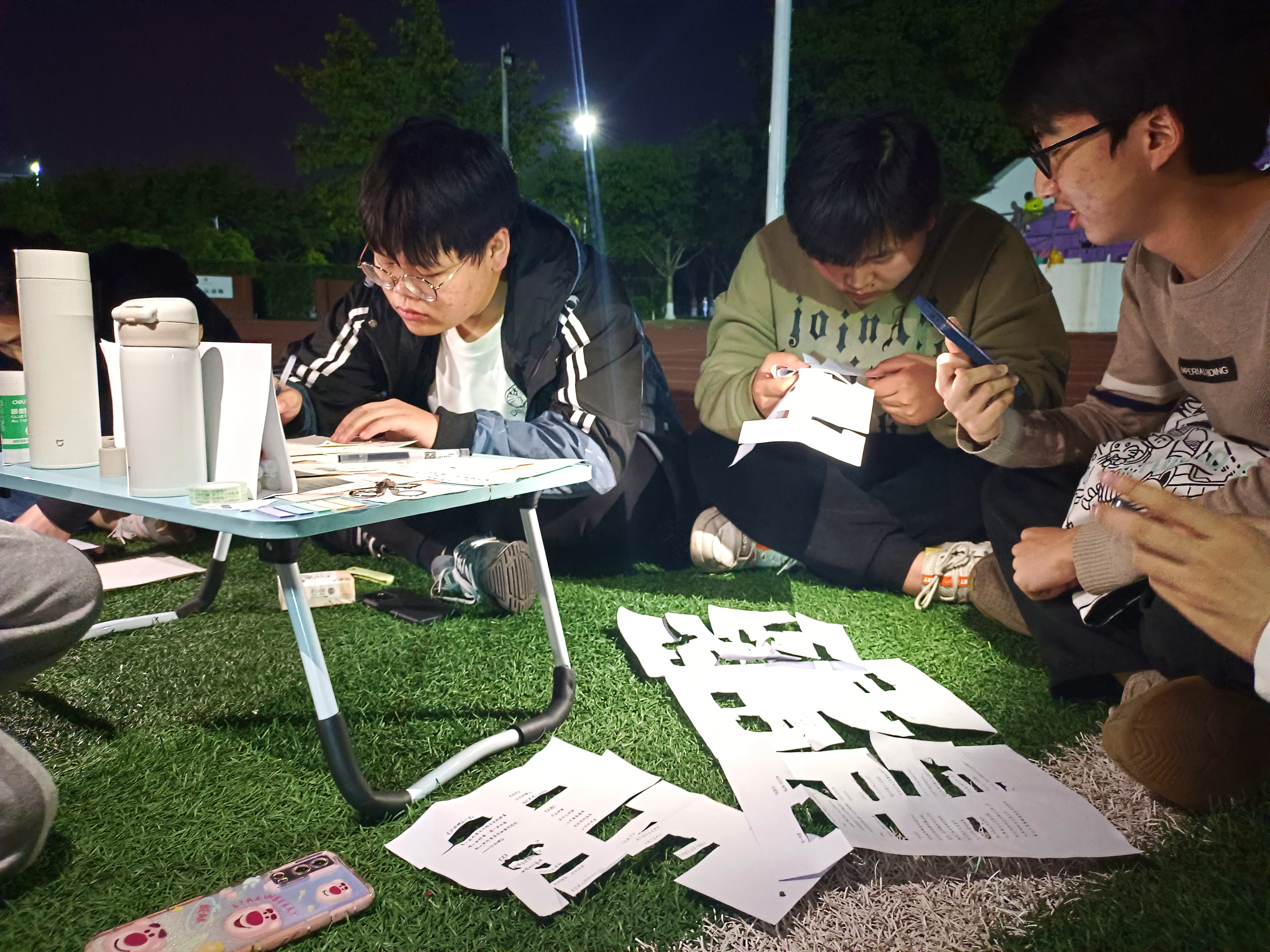 年月日时文法学院级汉语言文学班的同学依托写作课程开展的浪漫诗摊的诗歌拼贴活动在学校操场圆满完成活动。此次活动吸引了众多学