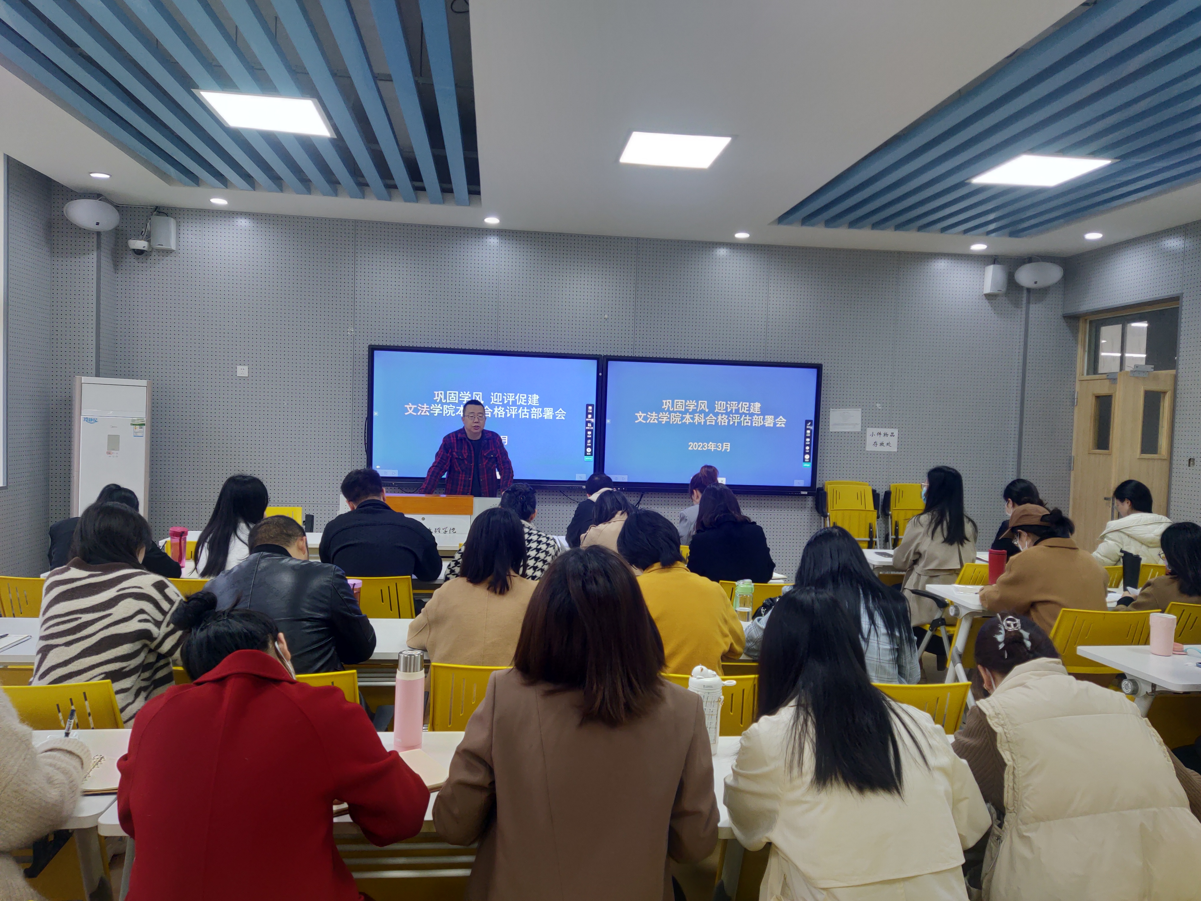 月日上午文法学院在教学楼教室召开巩固学风、迎评促建本科合格评估部署会议。党总支书记陆明烨、党总支副书记兼学工办主任李明昌