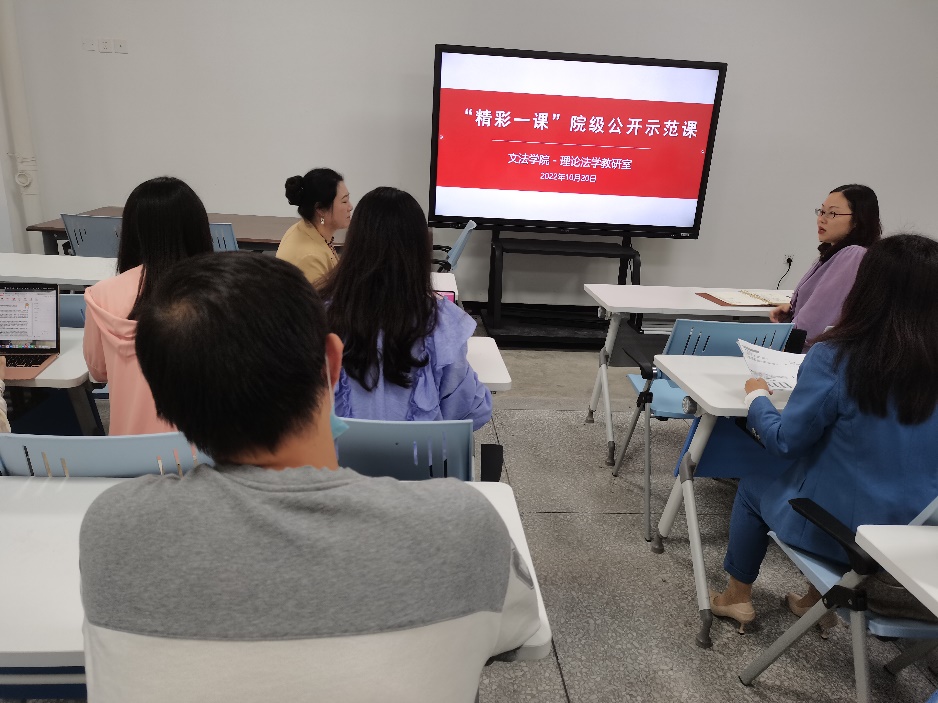 年月日文法学院理论法学教研室开展精彩一课公开示范课程教学教研室淡乐蓉教授讲授理论法课程教学对法的价值一章的内容进行深入、
