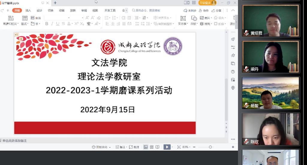 月日下午文法学院理论法学教研室开展本学期第三轮磨课专项活动。本次活动由文法学院副院长冉华庆主持教学督导淡乐容、法学教研室