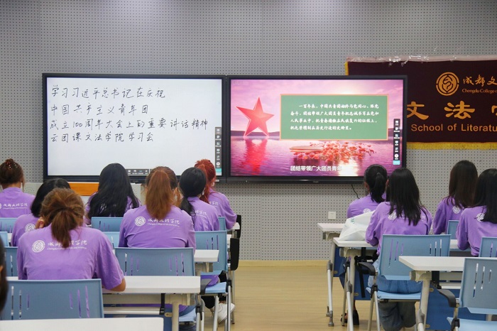 月日时分文法学院于组织学生干部开展线下学习会。文法学院全体学生干部参加会议。青春心向党百年再启航。本次会议以云团课与线下