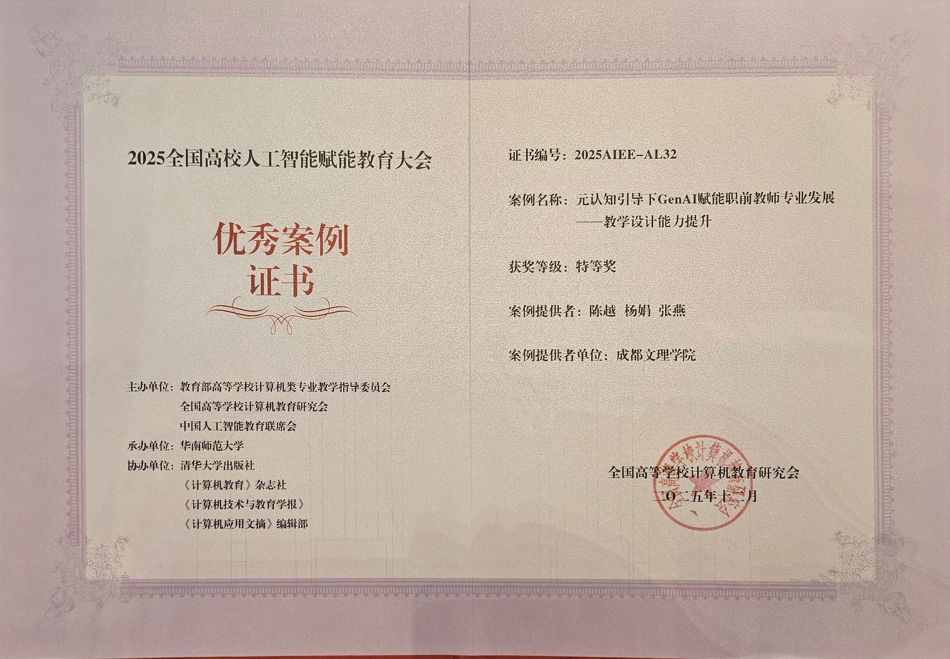 文法学院在2025全国高校人工智能赋能教育大会上荣获佳绩