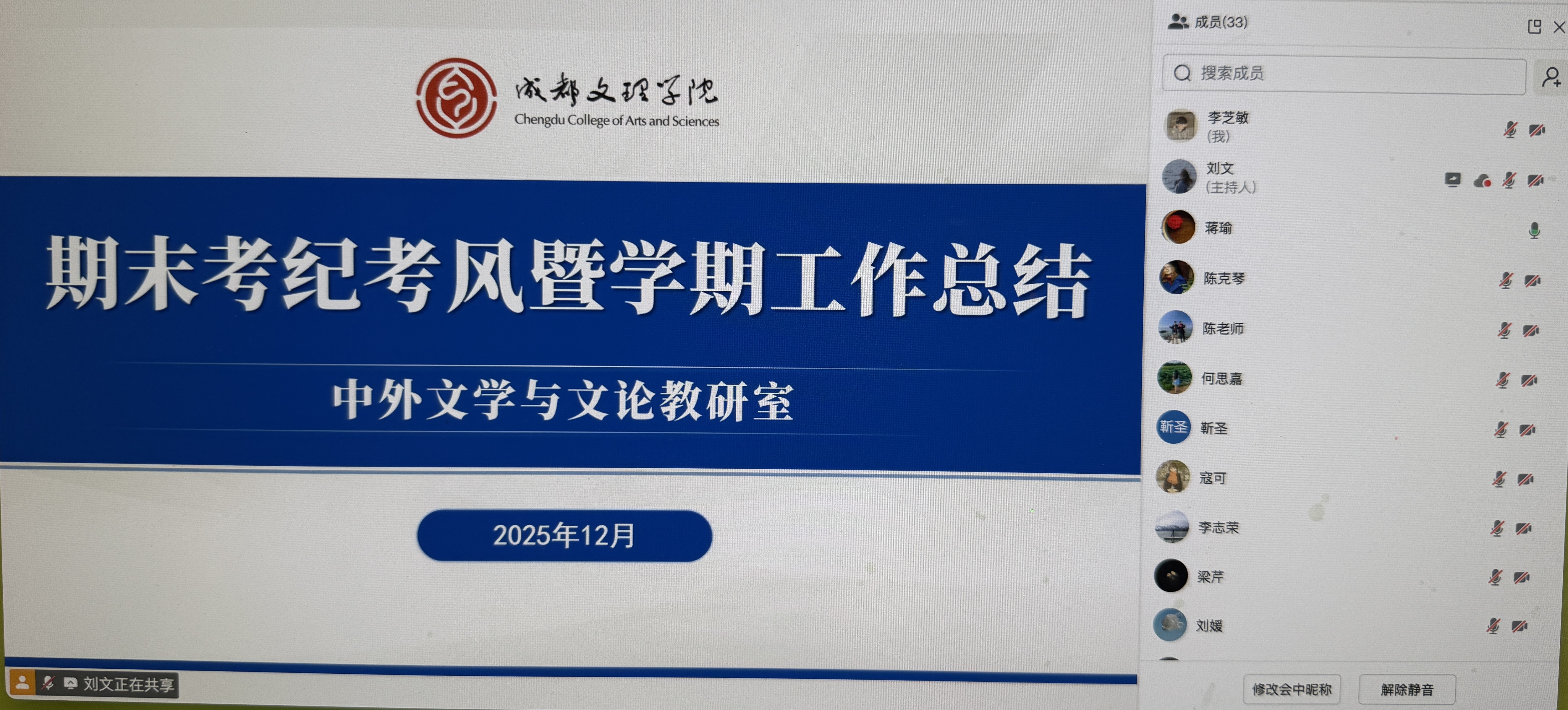 文法学院中外文学与文论教研室召开“期末考纪考风暨学期工作总结”线上专题会议,细化命题、监考、阅卷