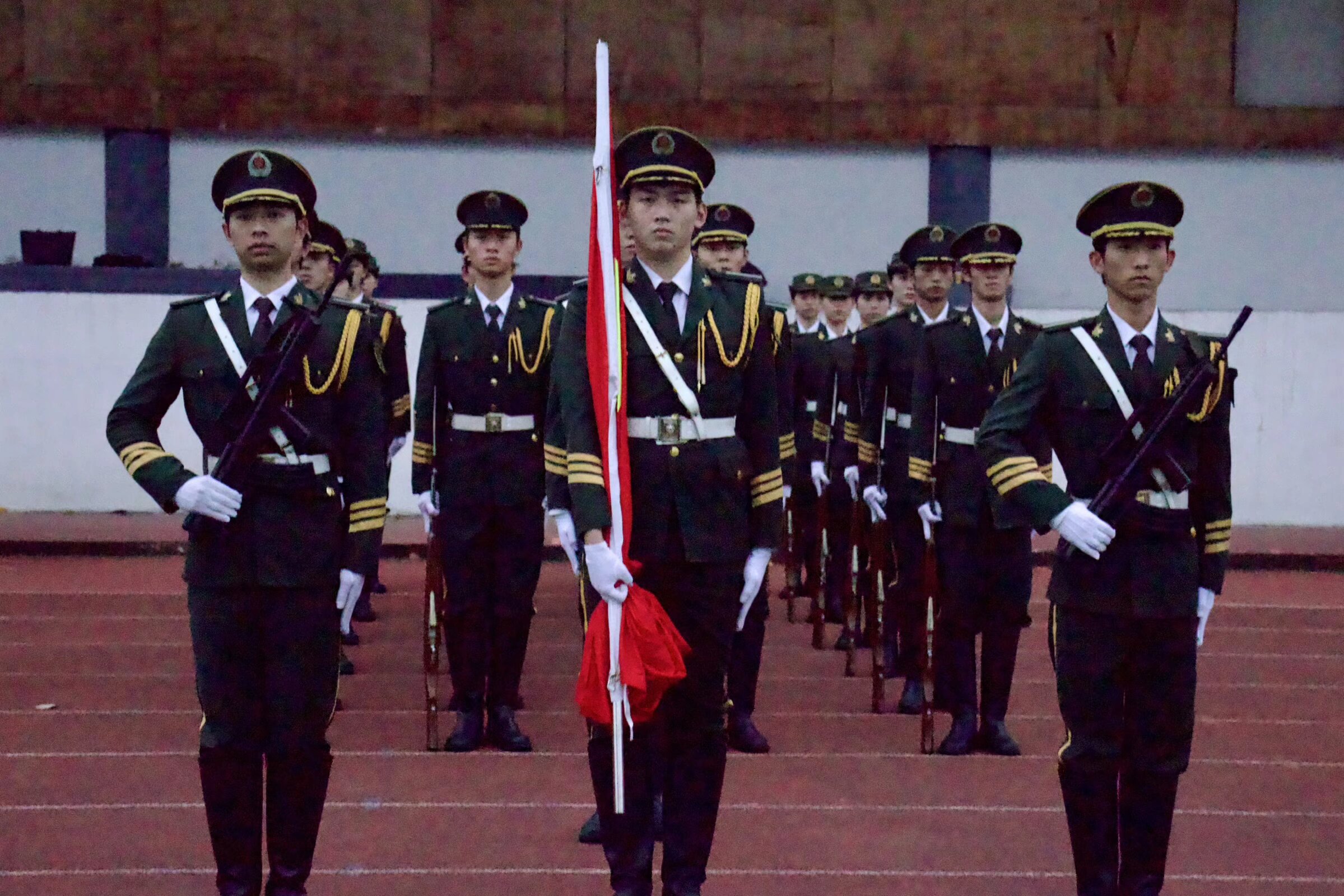 文法学院全体师生着装整齐,英姿飒爽的国旗护卫队迈着铿锵有力的正步,每一步都彰显出青春的朝气,在深耕学业的同时践行爱国初心
