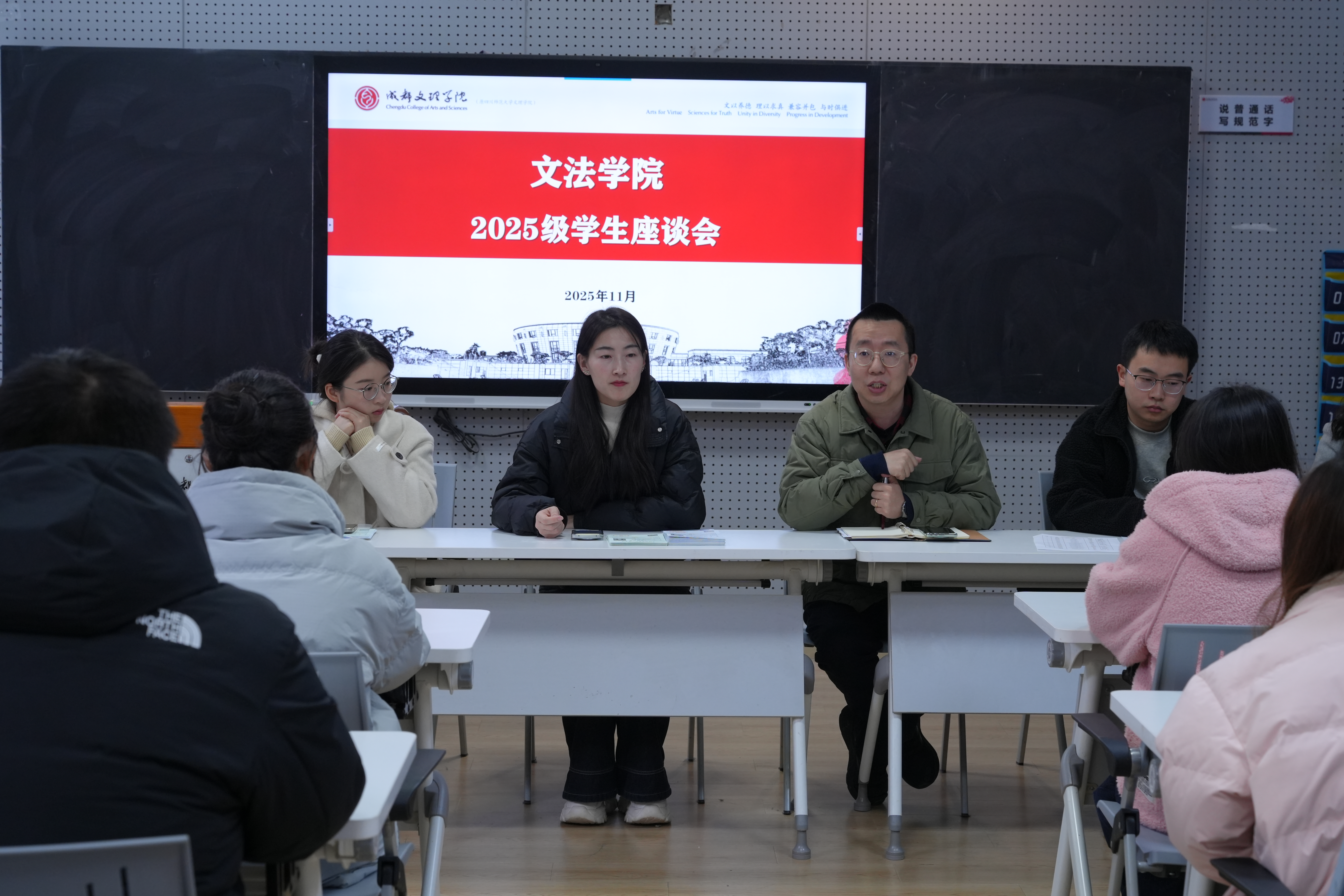 文法学院于行政楼A206成功举办了11月学生座谈会,文法学院党委副书记兼学工办主任李明昌、辅导员代表以及2025级学生代