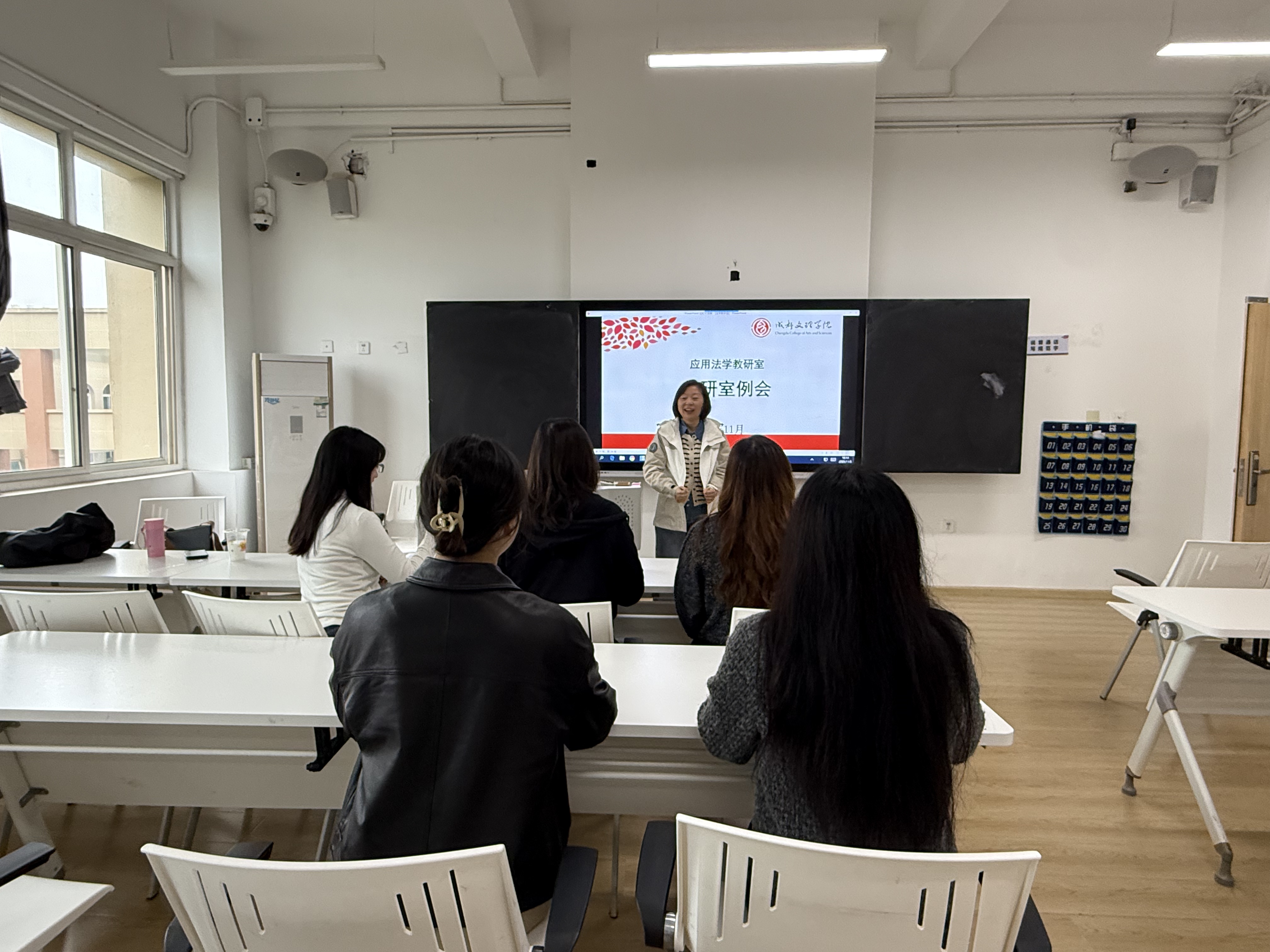 为进一步提升教学质量,应用法学教研室于2025年11月19日召开工作例会,会议传达了学院近期教学与科研工作的总体安排。