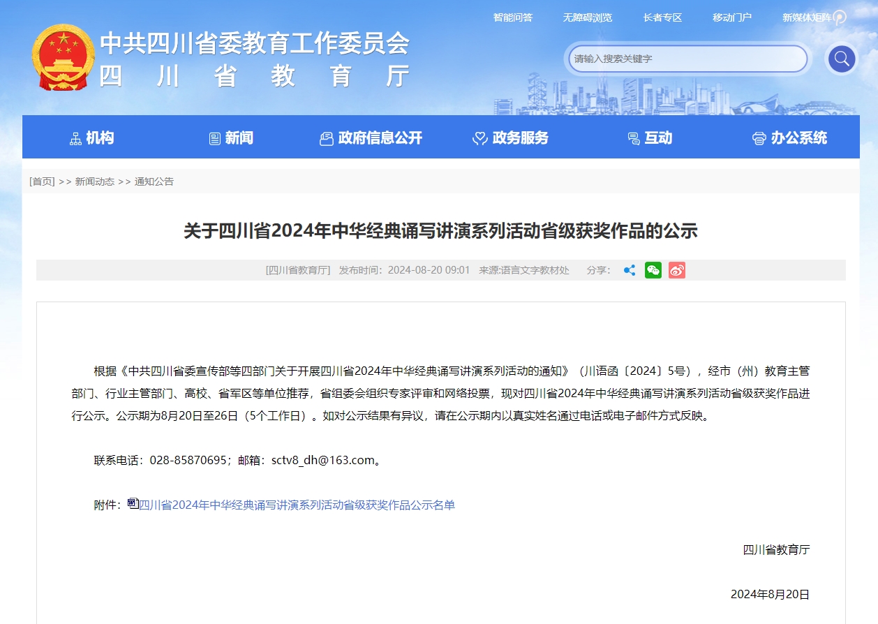 近日由中共四川省委教育工作委员会、四川省教育厅主办的大型经典赛事四川省年中华经典诵写讲演系列比赛已于近日落下帷幕。经过数