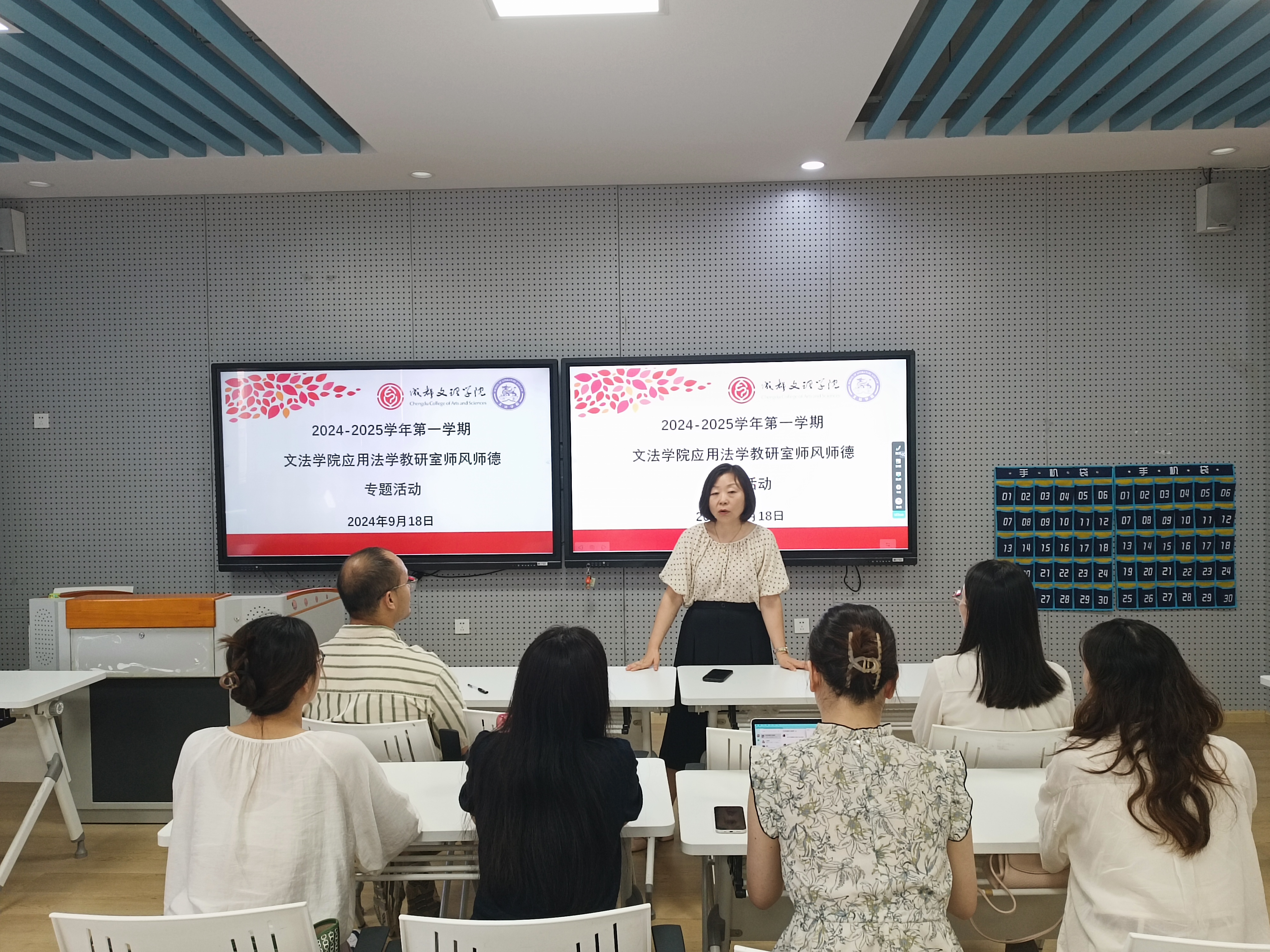 年月日下午应用法学教研室在主教学楼教室开展师德师风专题教育活动共同探讨和深化师德师风建设的重要性老师们就如何在新时代背景
