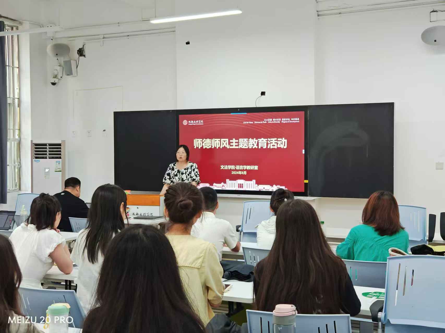 近日文法学院语言学教研室在教学楼栋教室开展了师德师风专题教育活动旨在进一步加强教师队伍建设提高教师职业道德水平营造风清气