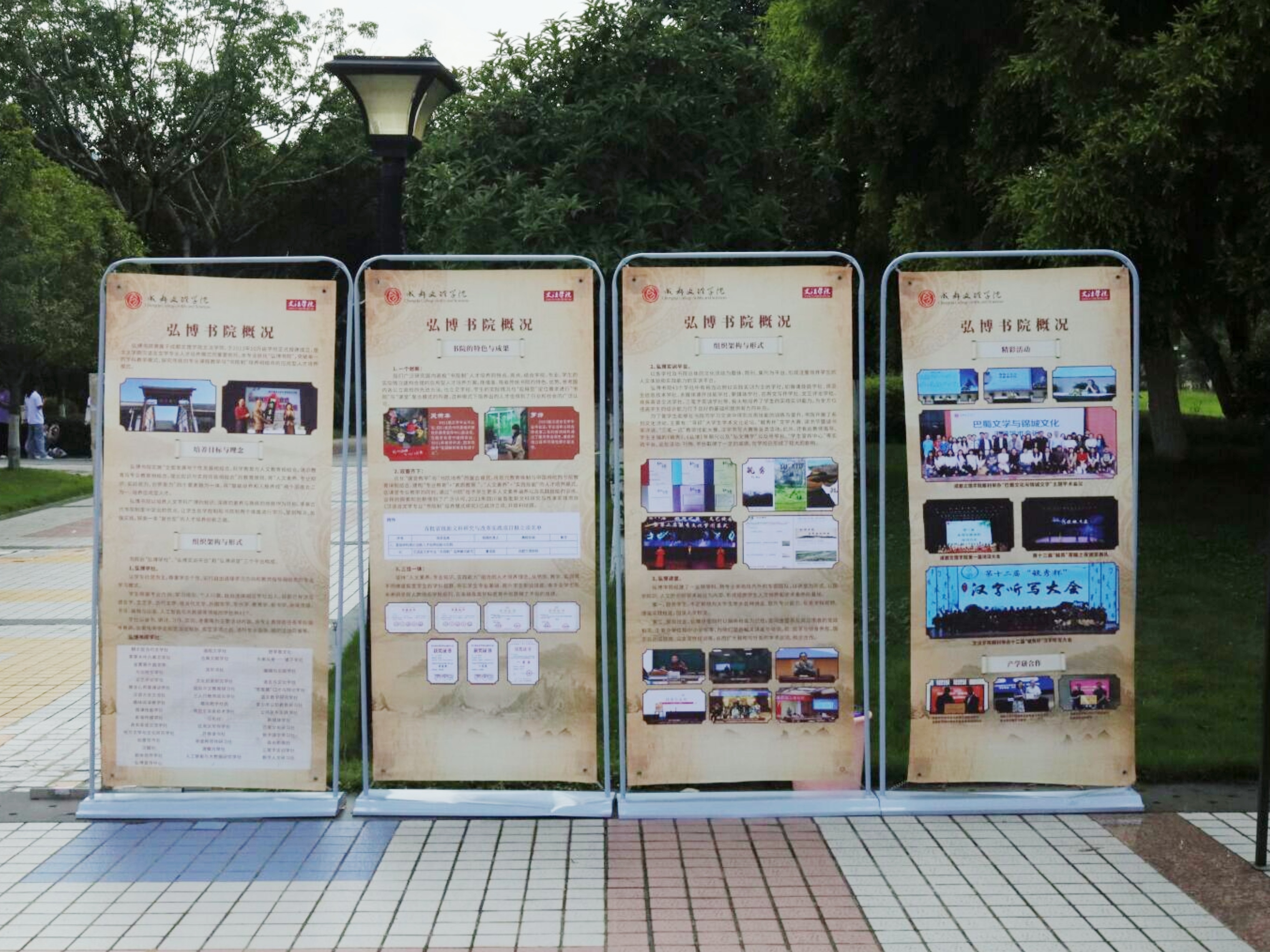 文法学院弘博书院于学校星空广场成功举办了以“弘道润心・博见笃行”为主题的教学成果展暨招新宣传活动