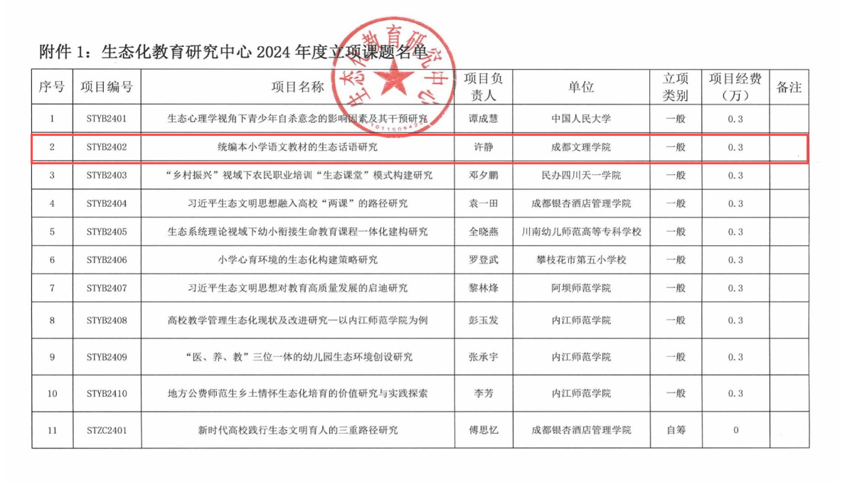 文法学院青年教师许静获立四川省人文社会科学重点研究基地“生态化教育研究中心”一般项目