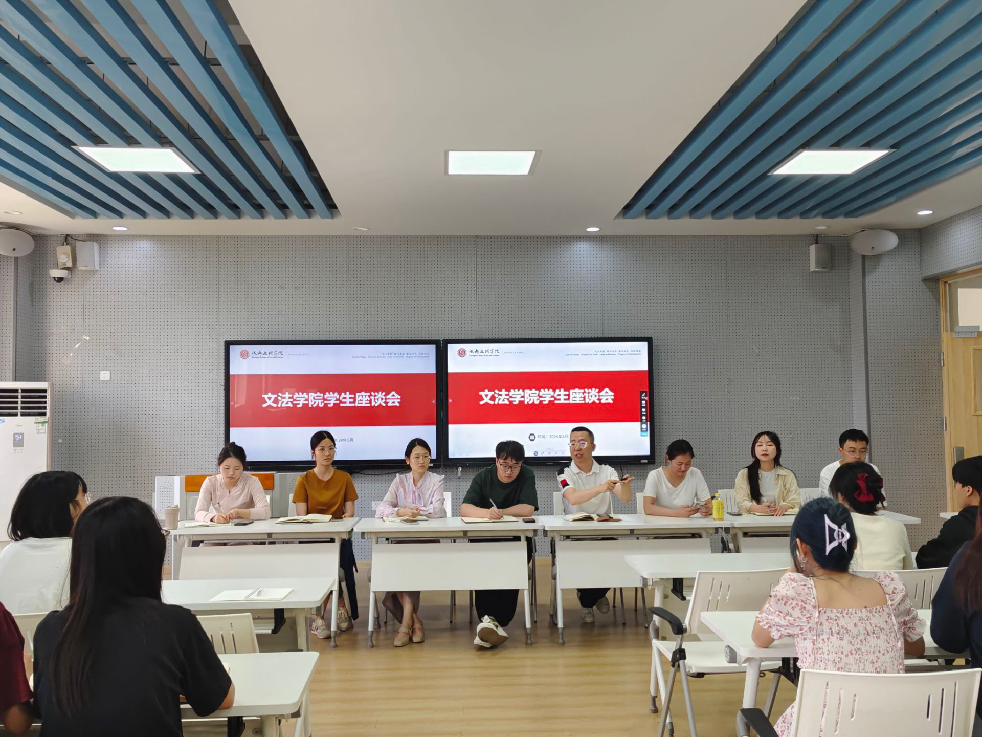 文法学院于月日在主教学楼开展学生干部交流座谈会。文法学院党总支副书记兼学工办主任李明昌、分团委书记王晨静、各学生机构指导