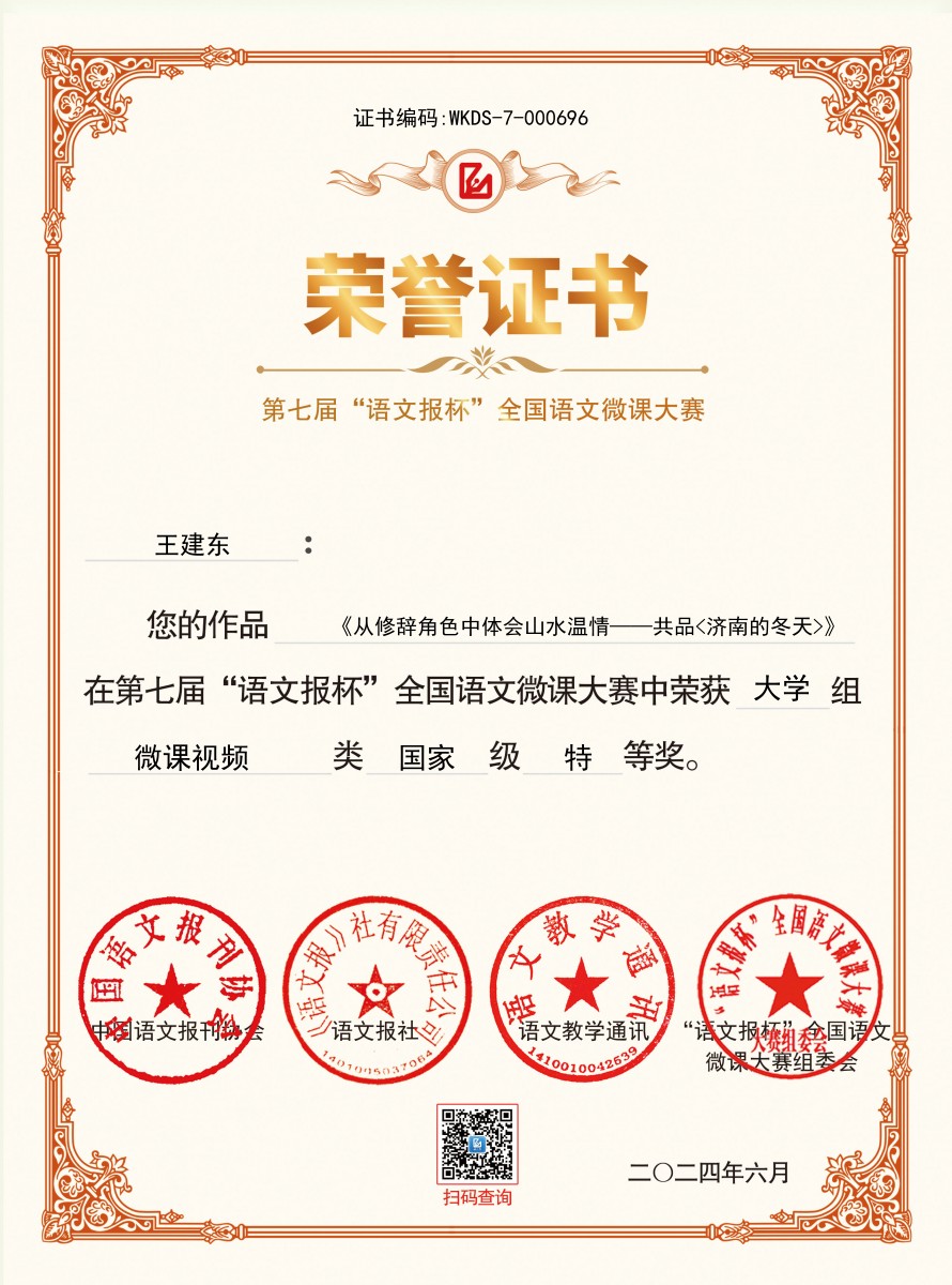 月日第七届语文报杯全国语文微课大赛结果公布文法学院张玉萍老师指导的学生唐小椒、张燕老师指导的学生王建东获得大学组微课视频