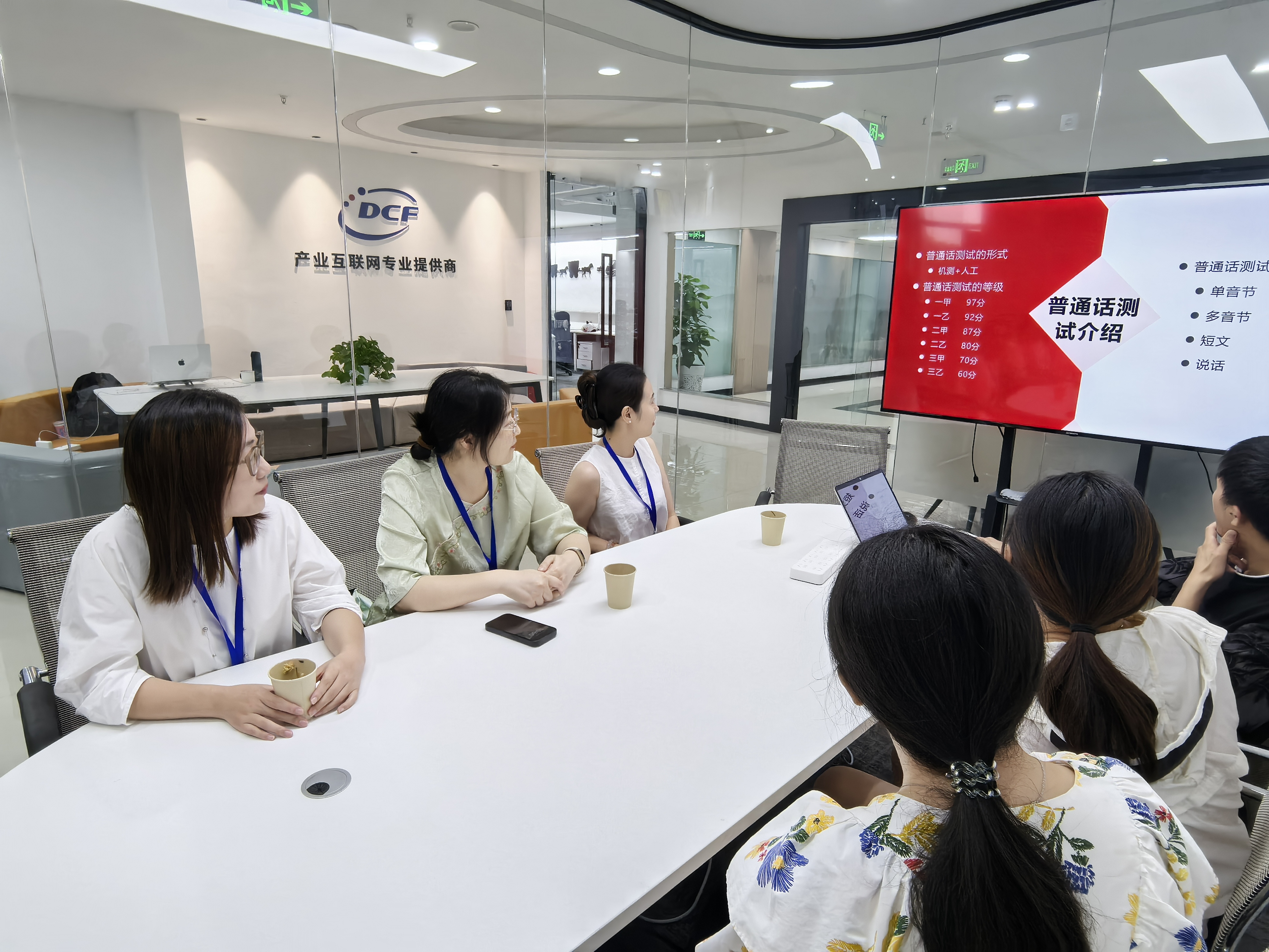 我院语言学教研室普通话教学团队袁倩、宋歌、吴璐璐三位老师赴四川数创未来科技有限公司开展业调研工作,深入了解企业员工普通话
