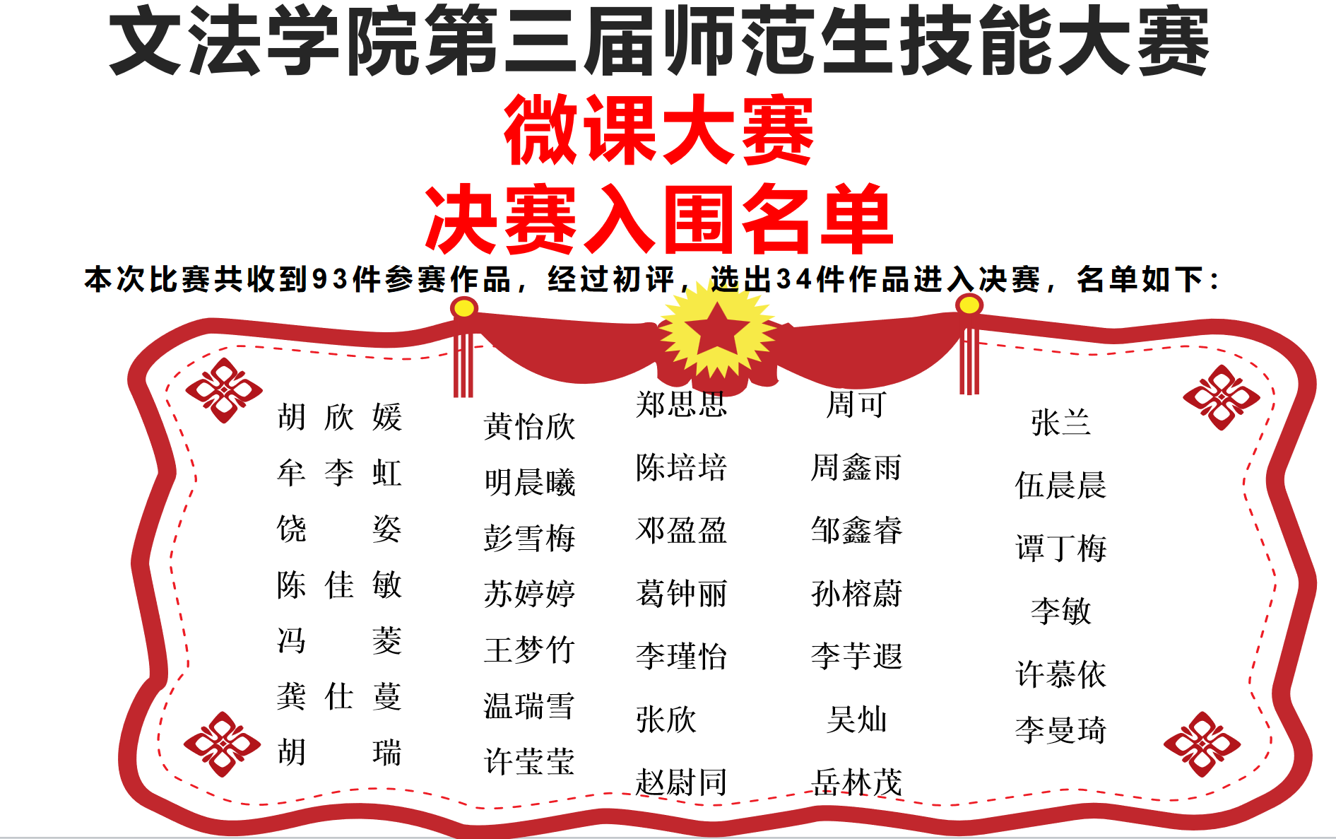 文法学院第三届师范生教学技能大赛于今年月中旬启动大赛分为教案设计大赛、板书设计大赛、模拟授课大赛及微课设计大赛四个项目。