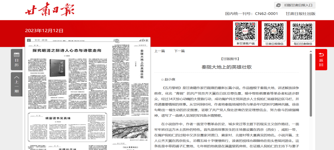年月日文法学院教师赵小爽在中共甘肃省委机关报甘肃日报发表文章秦陇大地上的英雄壮歌。文章对陕西师范大学广播电视专业硕士生导