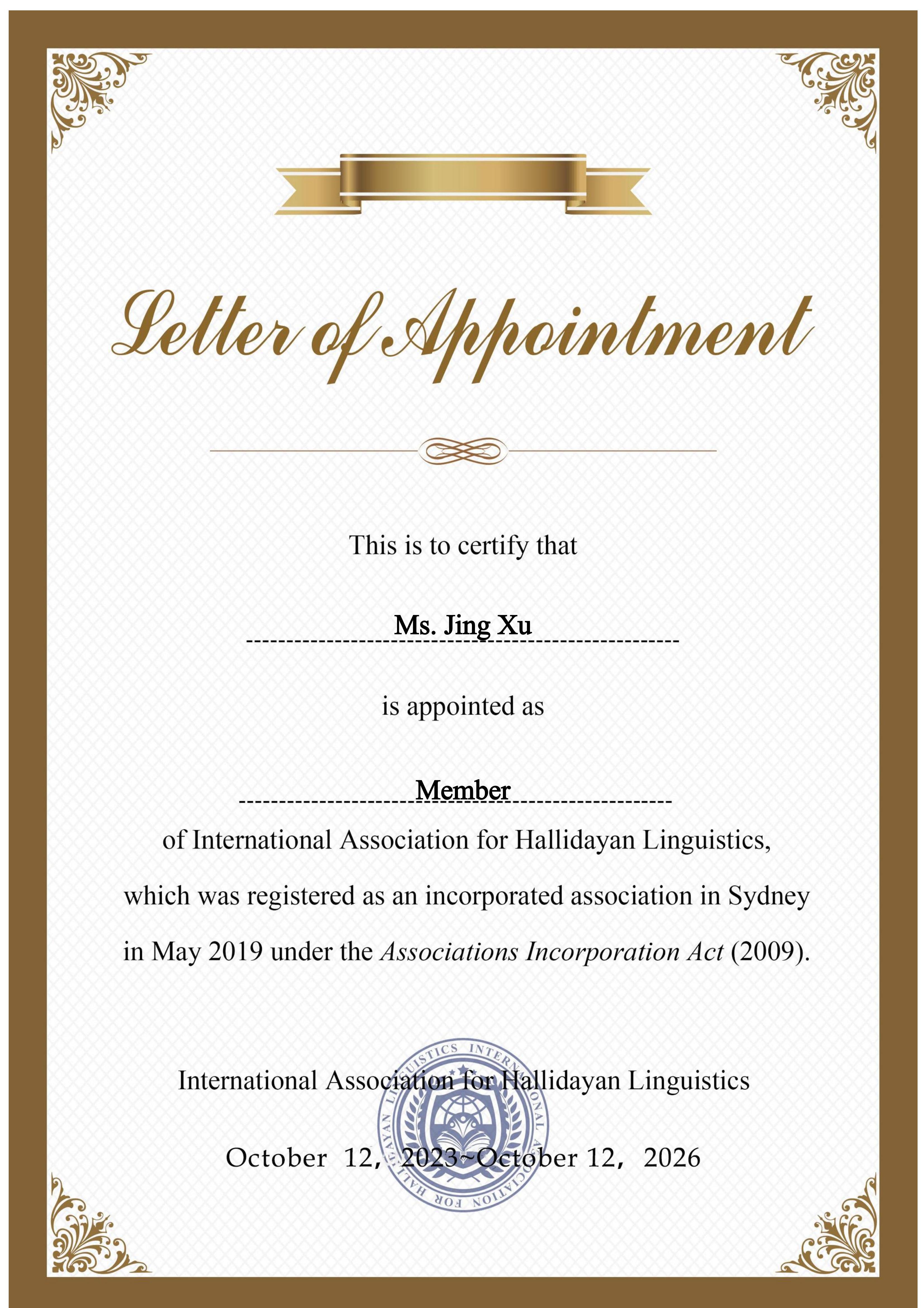 【喜讯】文法学院教师许静获聘国际韩礼德研究会会员