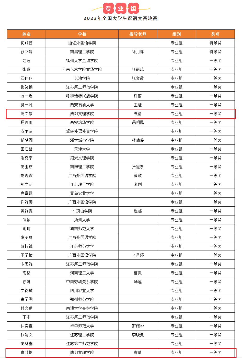近日年全国大学生汉语大赛决赛获奖名单公布我校与北京师范大学、华中师范大学等全国所院校同台比拼最终名学子喜获奖项。其中袁倩
