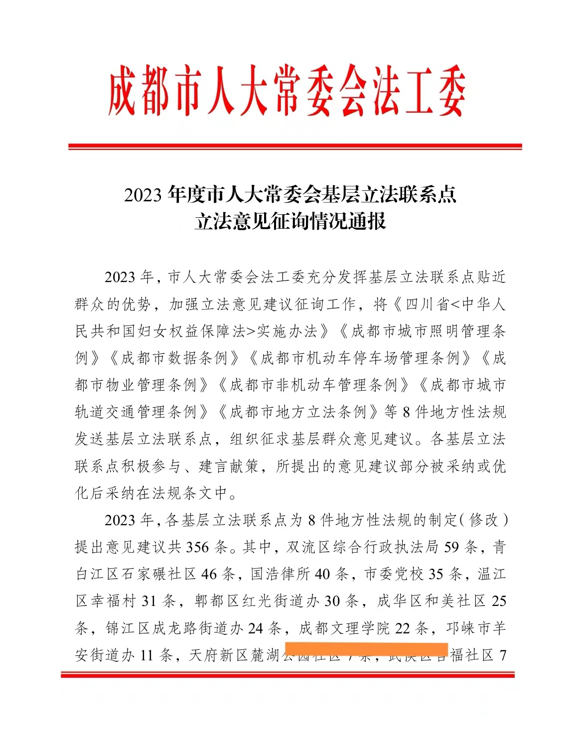 年成都市人大常委会基层立法联系点成都文理学院以下简称联系点充分履行贴近基层、服务群众的职能作用积极参加成都市立法意见建议