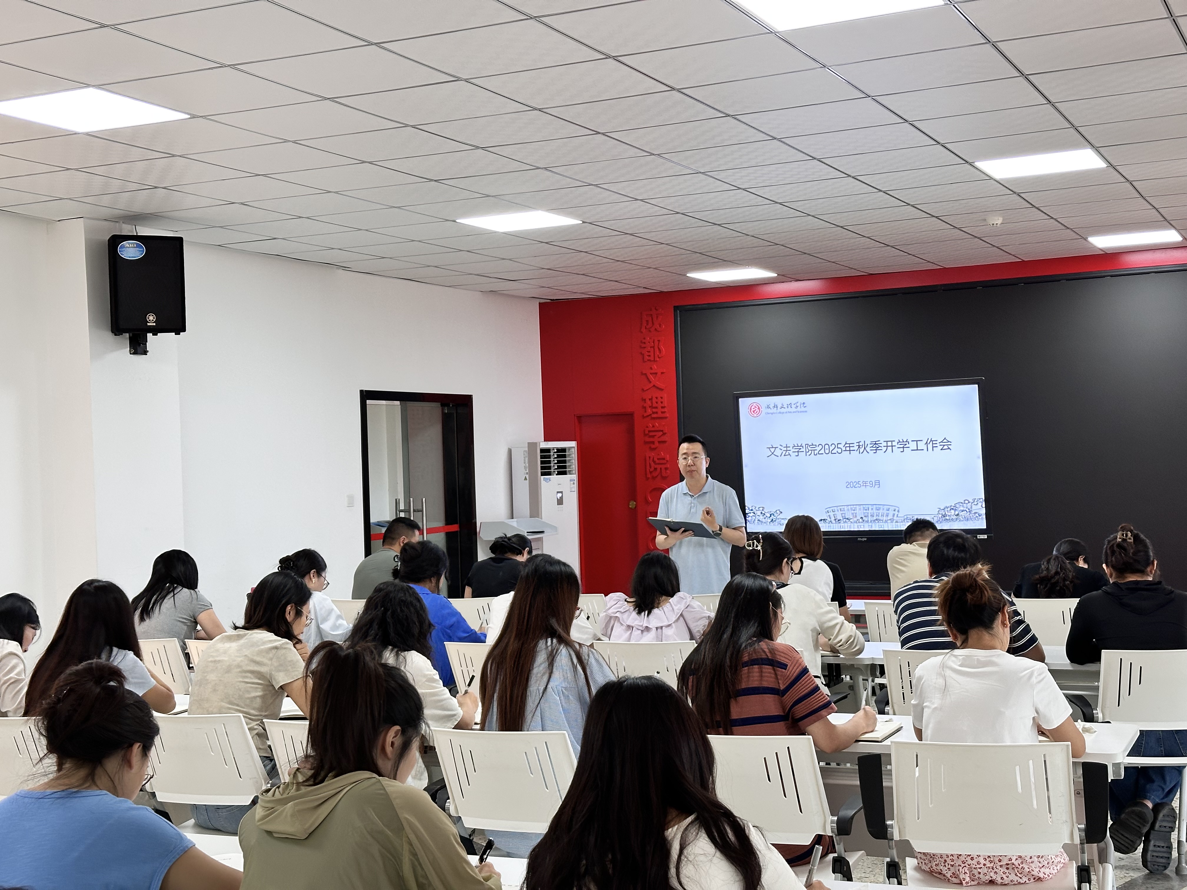 召开文法学院2025年秋季教职工大会,明确新学期发展目标与重点任务,会议由院长徐学东、教学院长曹佳丽、副书记李明昌、院长