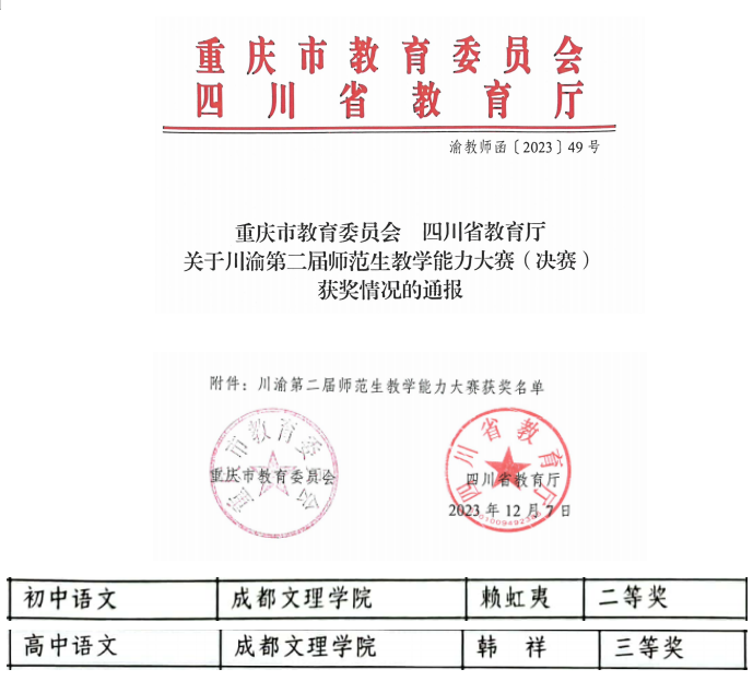 月日川渝第二届师范生教学能力大赛结果出炉。此次大赛由重庆市教育委员会、四川省教育厅联合举办长江师范学院承办月日至日决赛在