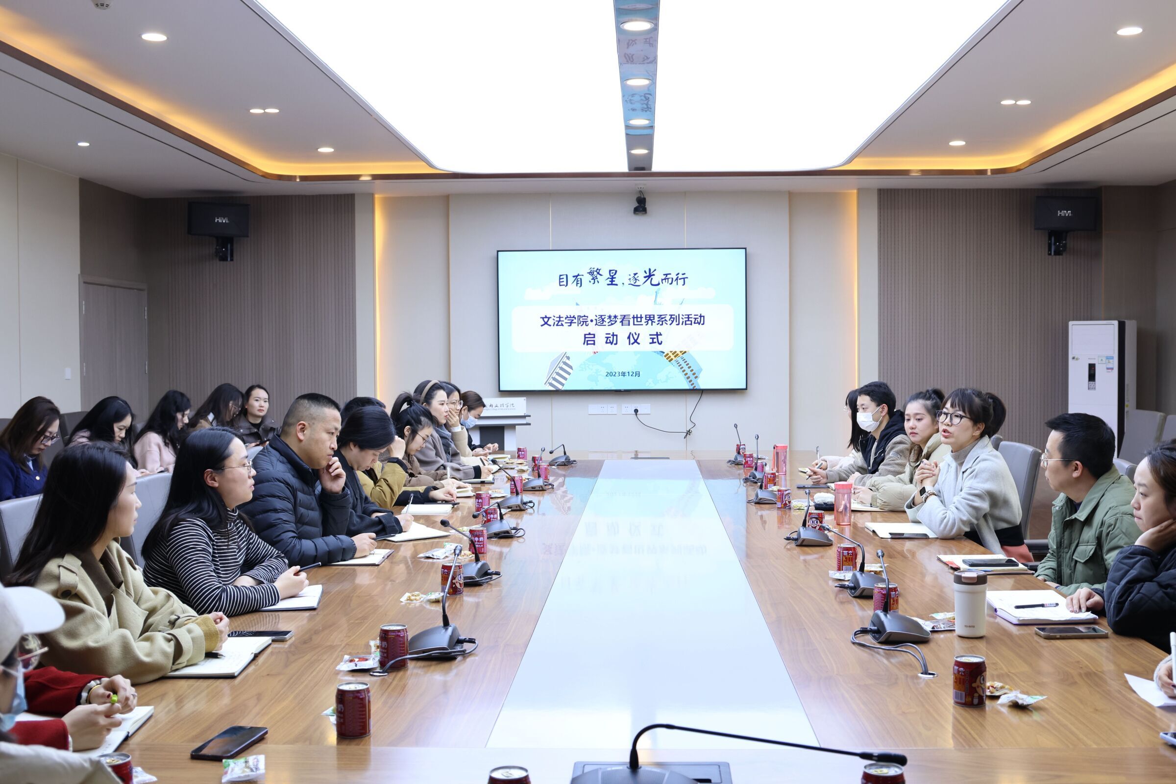 为拓宽学生国际视野助力学生成长成才月日下午文法学院在行政楼第二会议室举行目有繁星逐光而行逐梦看世界系列活动启动仪式。文法