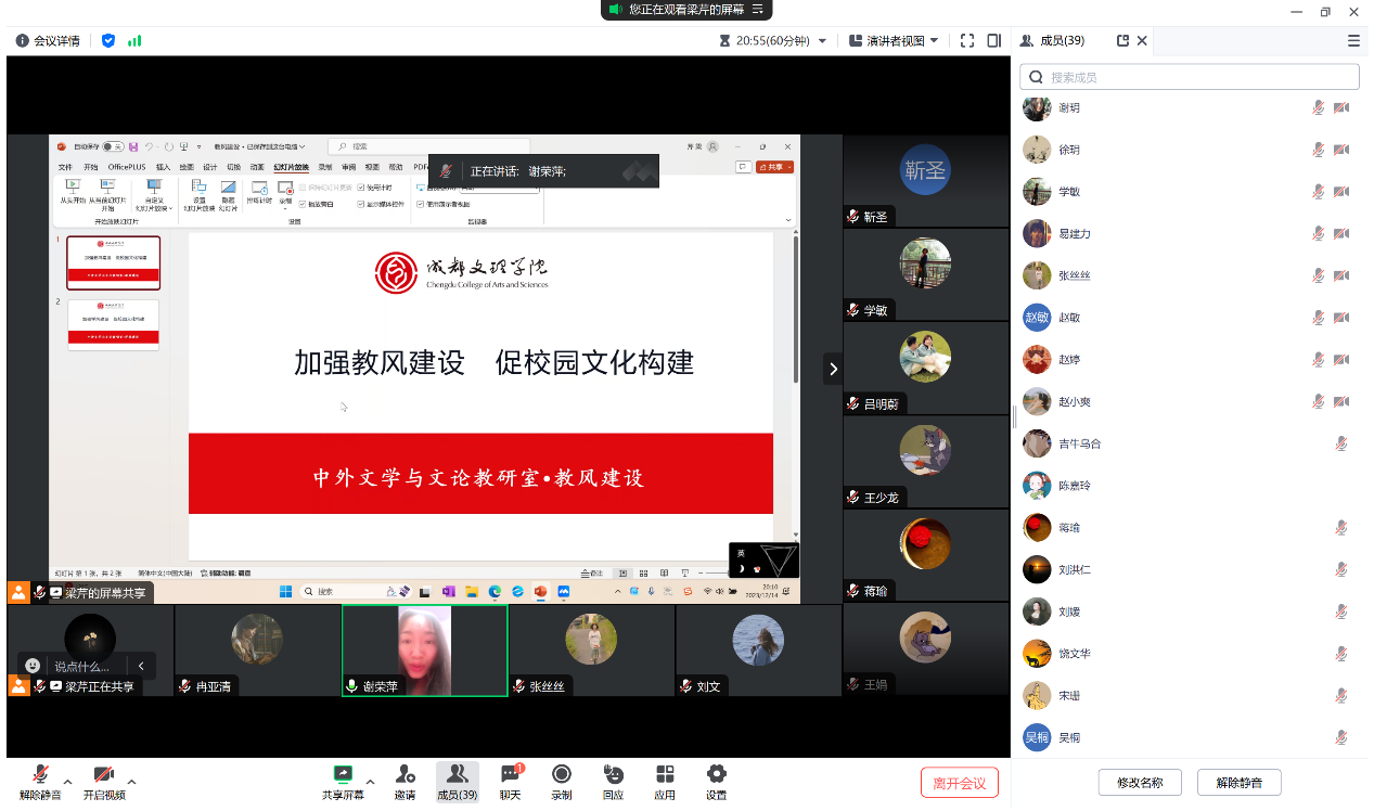 年月日下午为进一步提升课堂教学质量和校园文化建设文法学院中外文学与文论教研室于线上开展加强教风建设促校园文化构建集体学习