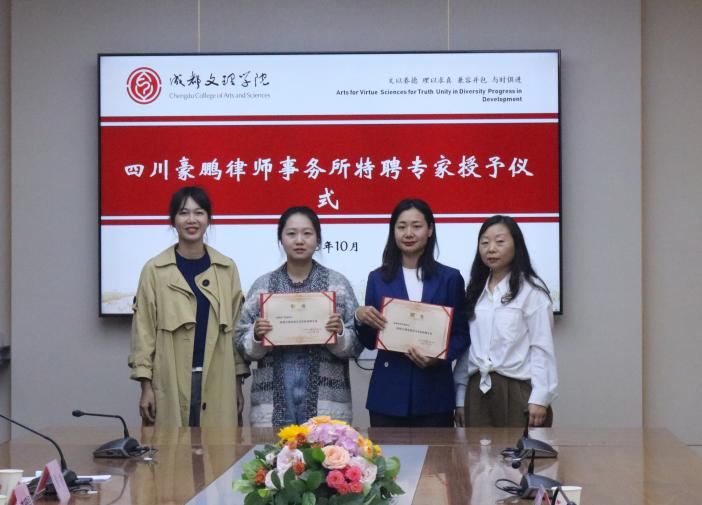 年月日下午成都文理学院文法学院在行政楼第二会议室举行专家聘任仪式四川豪鹏律师事务所主任吴坤律师和四川豪鹏律师事务所党支部