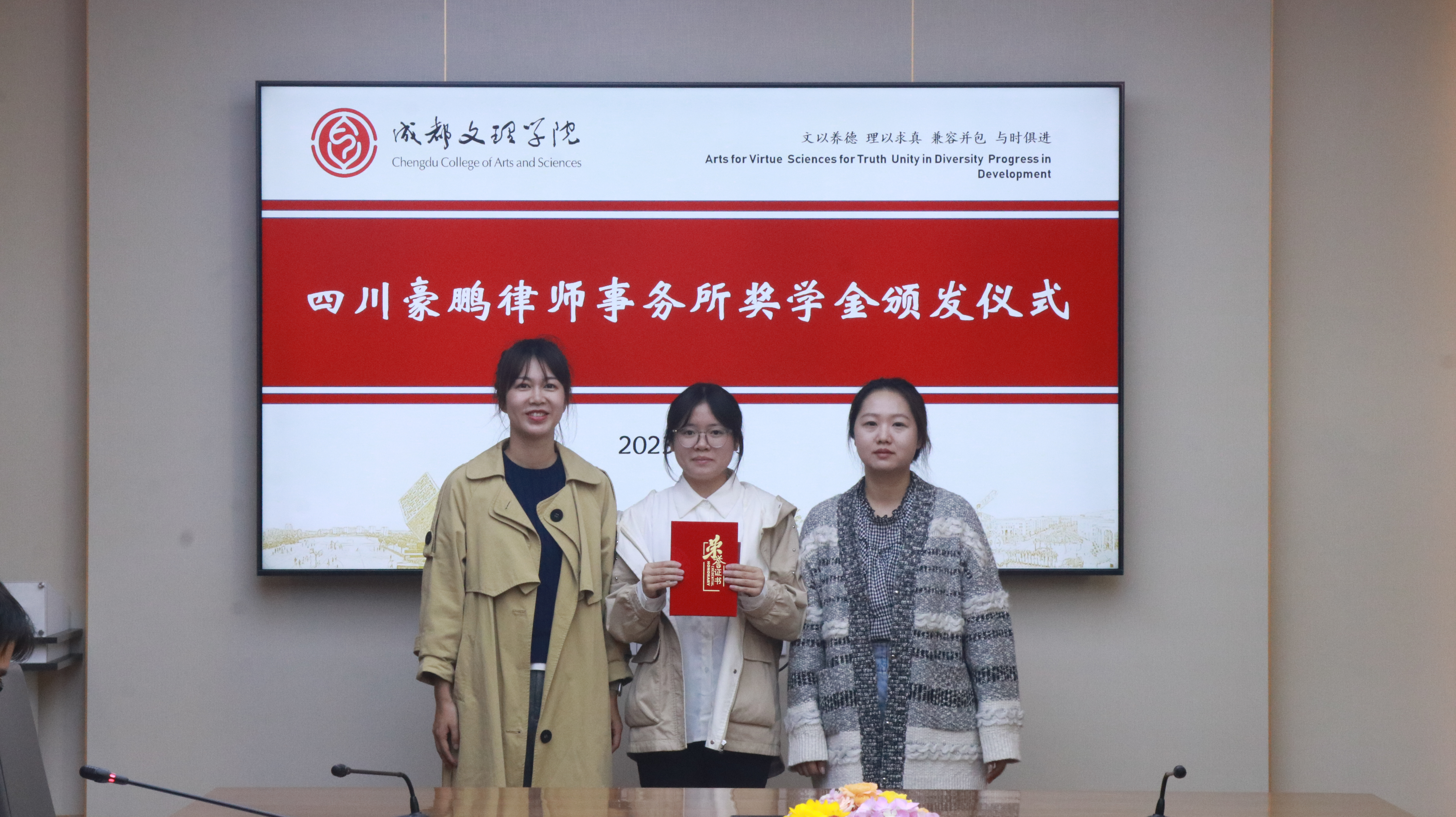 年月日下午成都文理学院文法学院在行政楼第二会议室举行豪鹏律所学业奖学金颁奖仪式。文法学院党总支书记陆明烨、党总支副书记兼