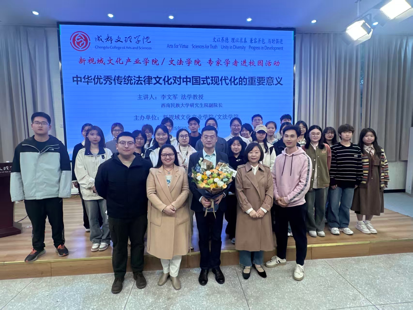 为深化法学学科建设,成都文理学院新视域文化产业学院、文法学院邀请西南民族大学研究生院副院长、法学教授李文军莅临我校,与文