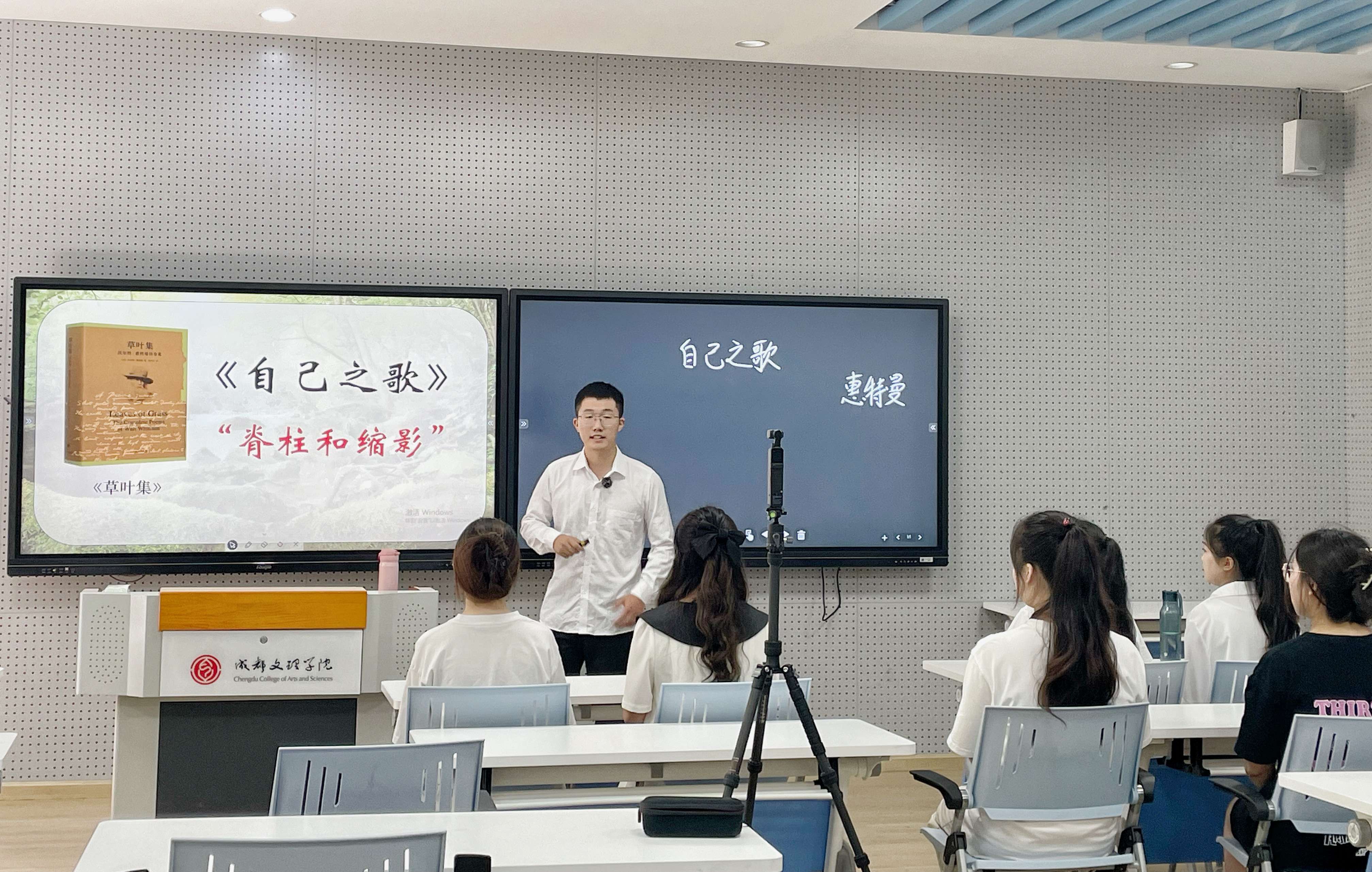 月日下午文法学院语文教育教研室及师范生教学技能与素养实训中心联合在教室开展师范生教学大赛备赛评课会。本次评课会为川渝杯师