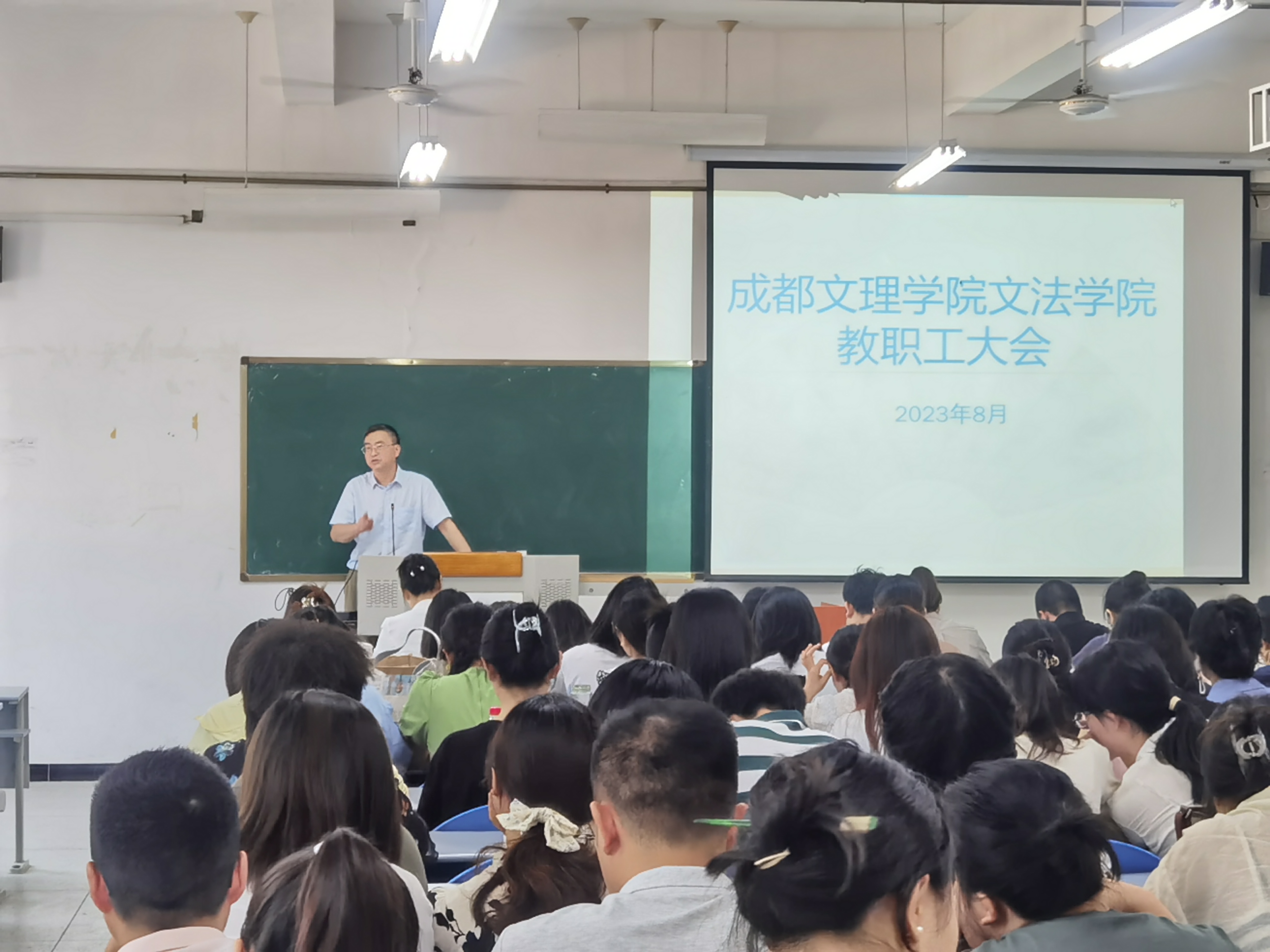 月日文法学院在三教教室召开新学期教职工大会。文法学院院长徐学东副院长冉华庆、曹佳丽党总支书记陆明烨党总支副书记兼学工办主
