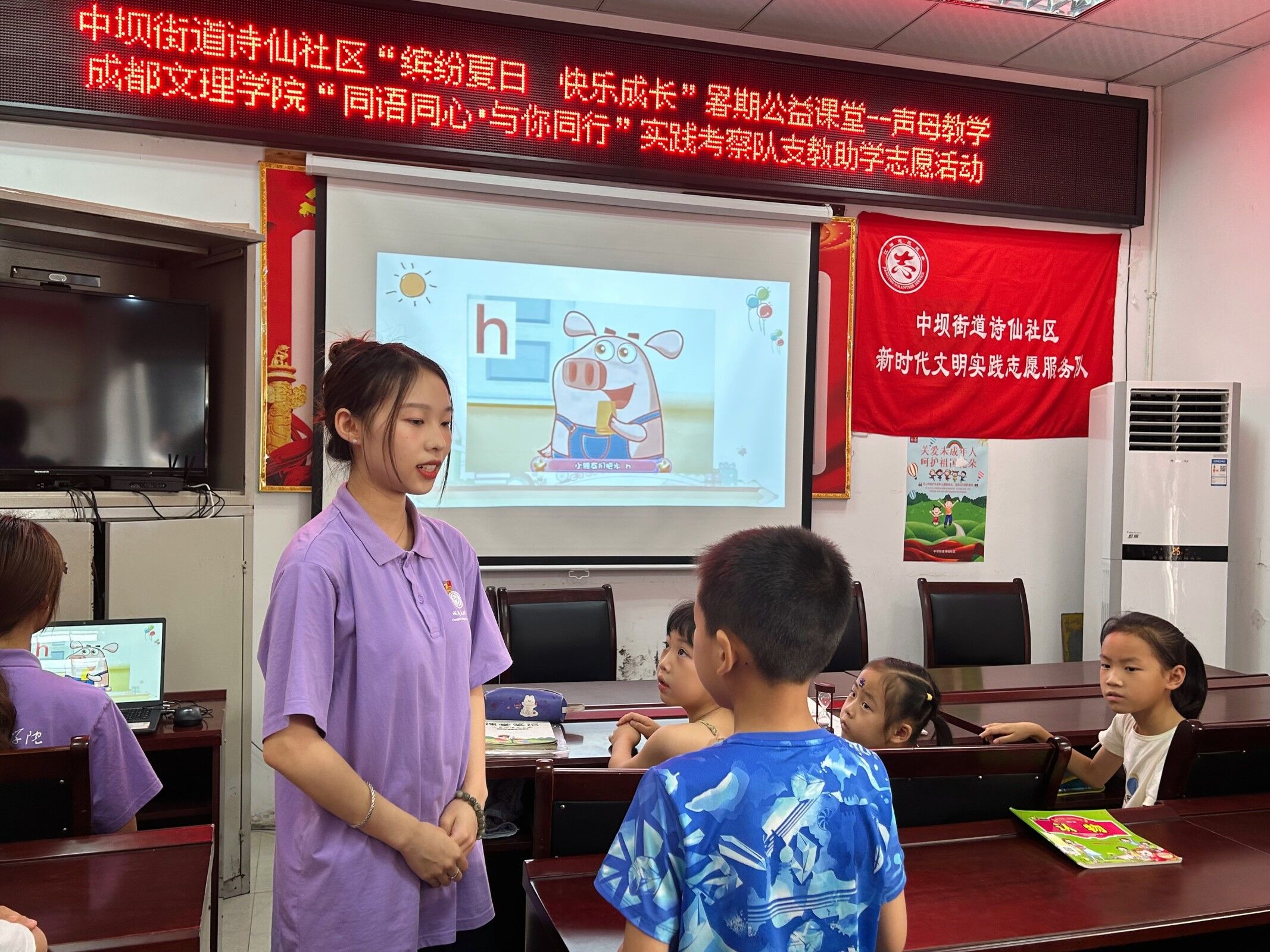 文法学院“同语童心·与你同行”实践考察队推广普通话声母教学