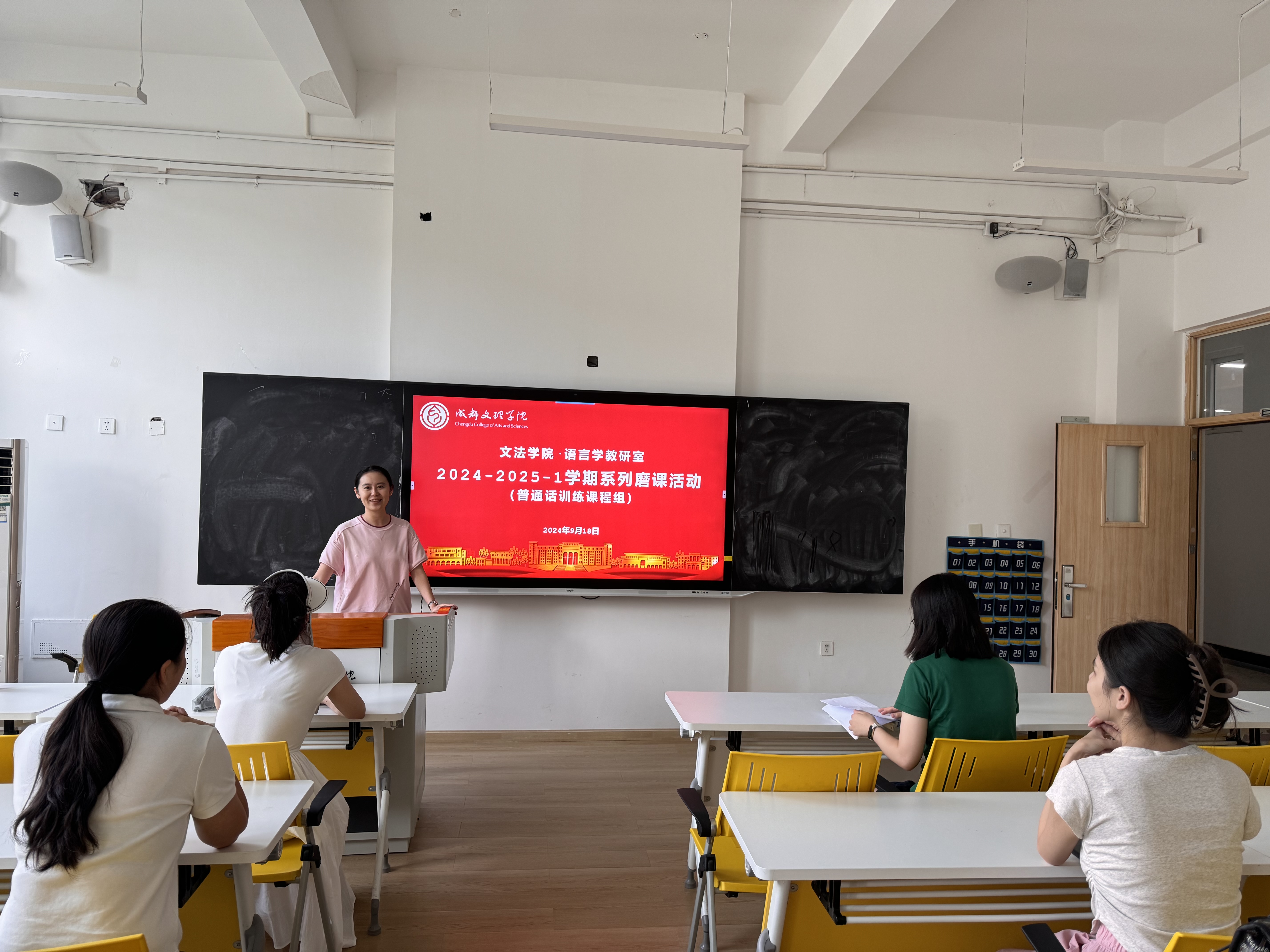 为切实提高人才培养质量,促进教师不断更新教学理念、优化教学过程、完善教学方法、提升教学水平,文法学院语言学教研室《普通话训练》课程组于9月25日下午在C310开展了新学期磨课研讨活动。