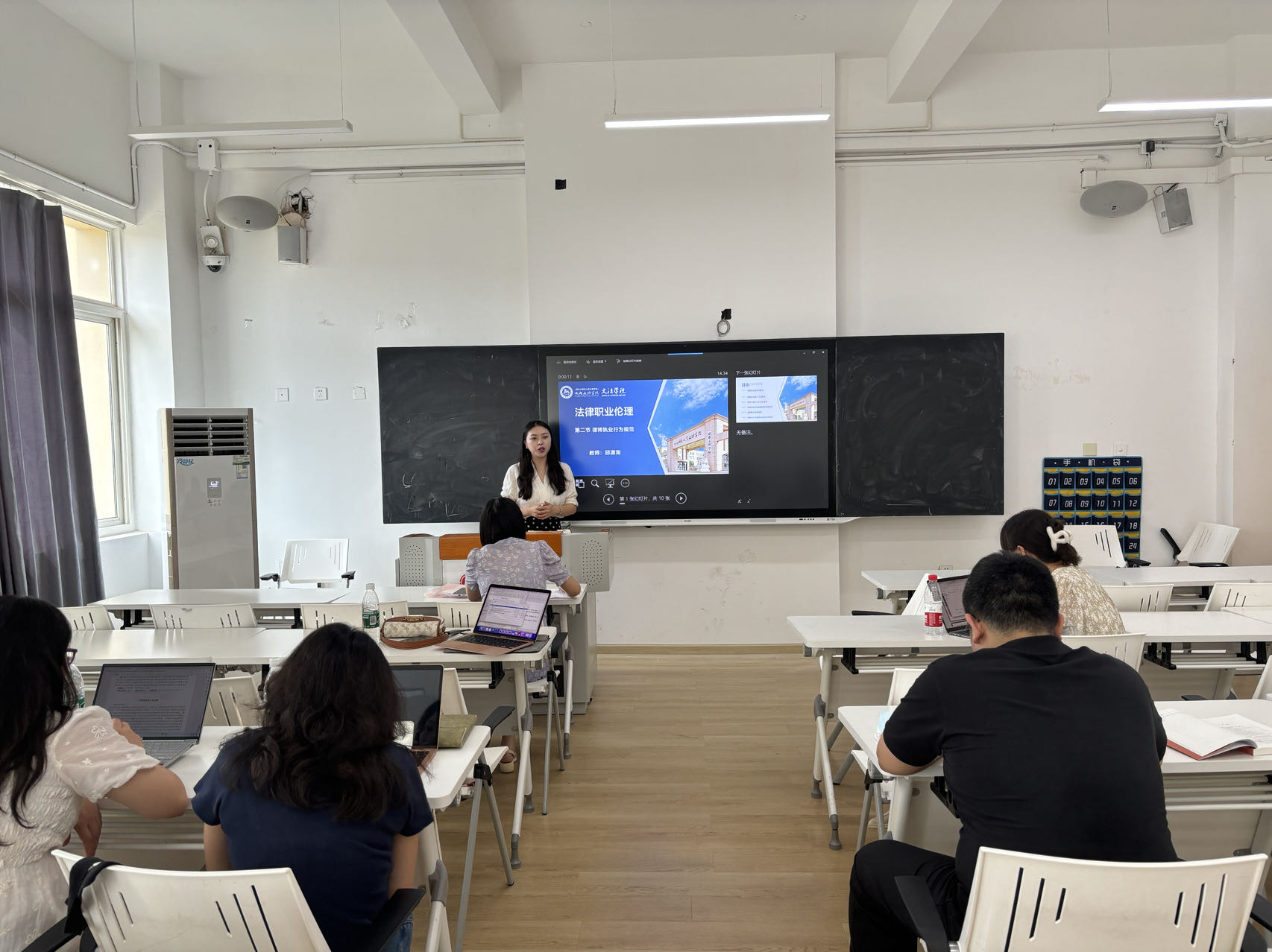 2024年09月18日下午,理论法学教研室在主教学楼C405教室开展了2024-2025学年第一学期的磨课活动。活动由文法学院理论法学教研室主任鲍明明副教授主持,理论法学教研室教师到场观摩学习。本次“磨课”由《法律职业伦理》课程组的邱潇淘老师以及《刑法分论》课程组的余颖老师进行主讲。