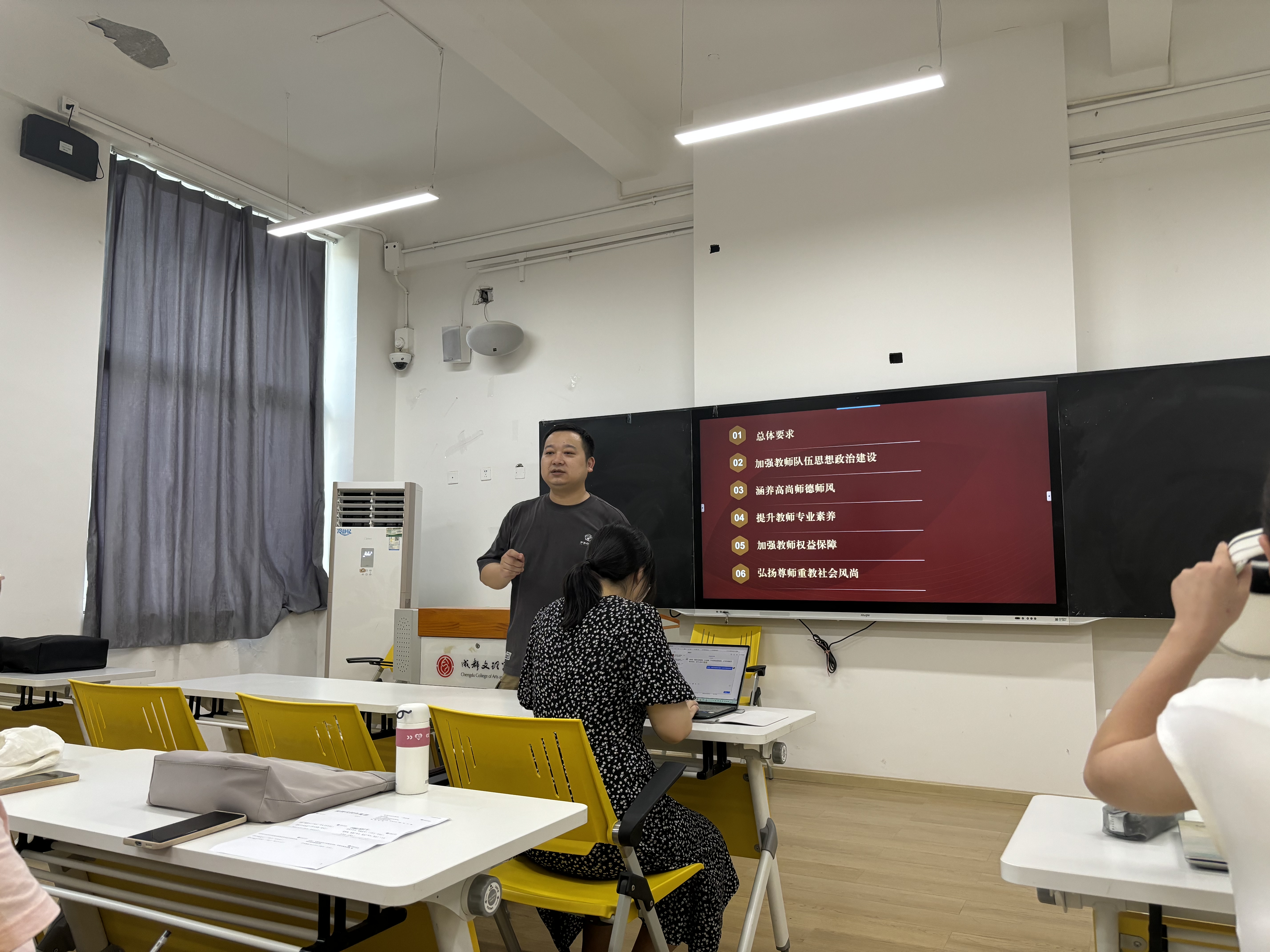 活动中,教研室主任项乙朋、副主任袁倩分别进行了精彩的分享讲话。他们结合自己的教育实践,深刻阐述了教育家精神的时代内涵,强调教师应以德育人,为我国教育事业贡献力量。