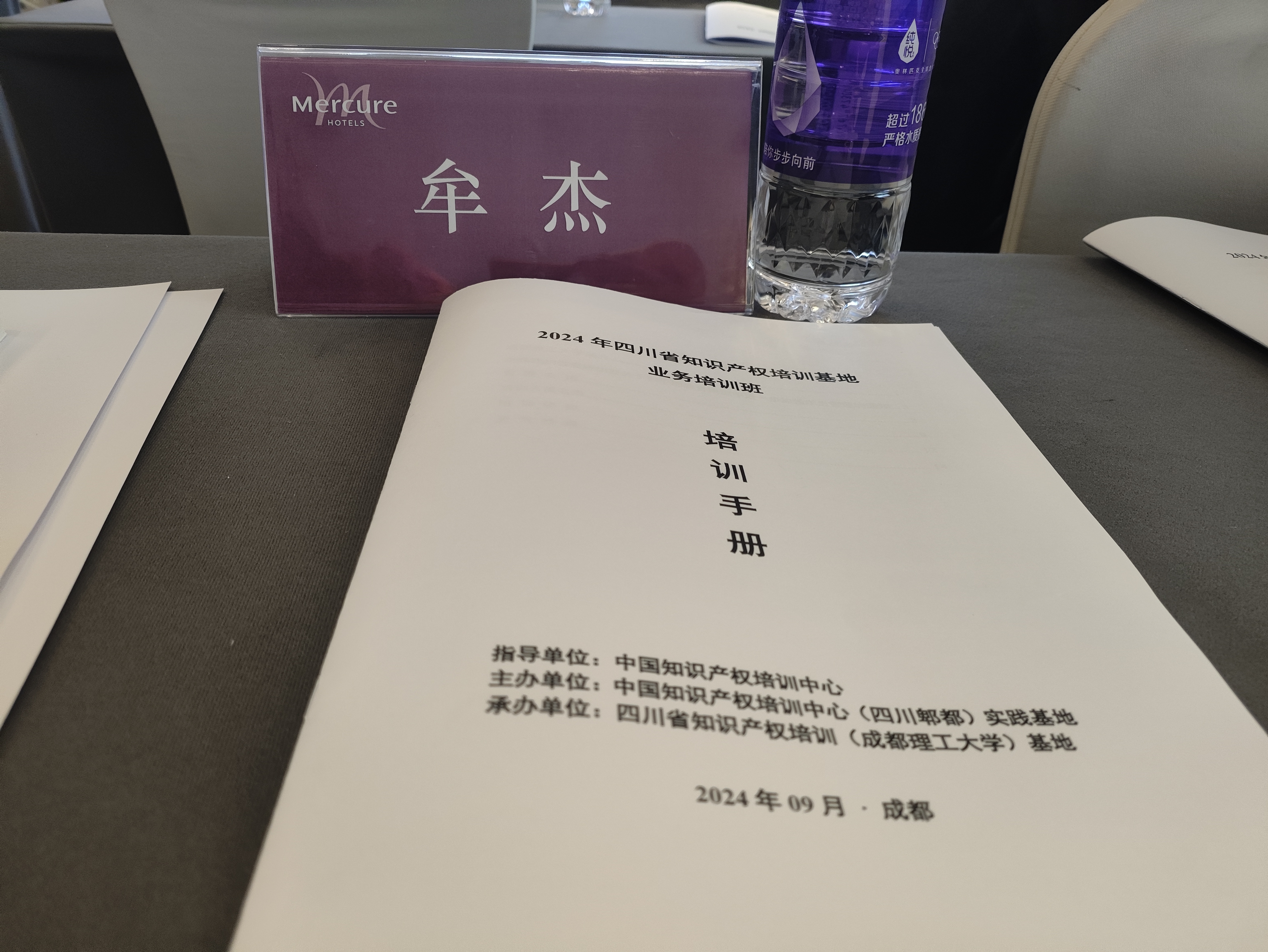 为深入学习贯彻习近平总书记关于知识产权工作系列重要指示论述,贯彻落实《知识产权强国建设纲要(2021-2035 年)》《“十四五”国家知识产权保护和运用规划》和《四川省“十四五”知识产权保护和运用规划》《四川省知识产权强省建设纲要(2022-2035 年)》等重大决策部署,更好地发挥知识产权培训基地职能,深入推进知识产权“五进”,大力培养知识产权强省建设和经济高质量发展需要的知识产权人才,2024年四川省知识产权培训基地业务培训班由成都理工大学承办,于2024 年 9 月 11日至13日在成都美居酒店召开。四川省知识产权培训基地(成都文理学院)负责人牟杰参与了本次培训。
