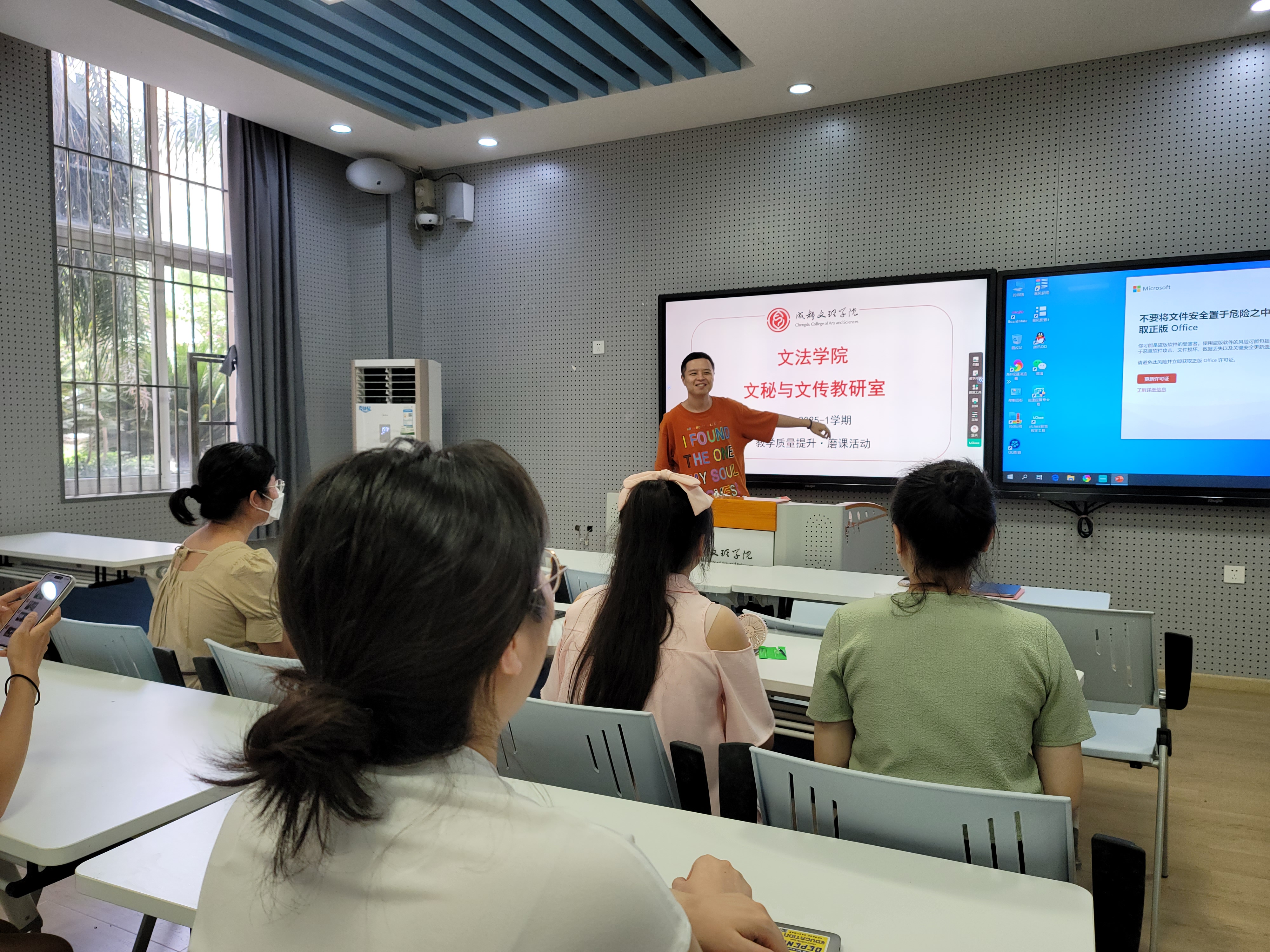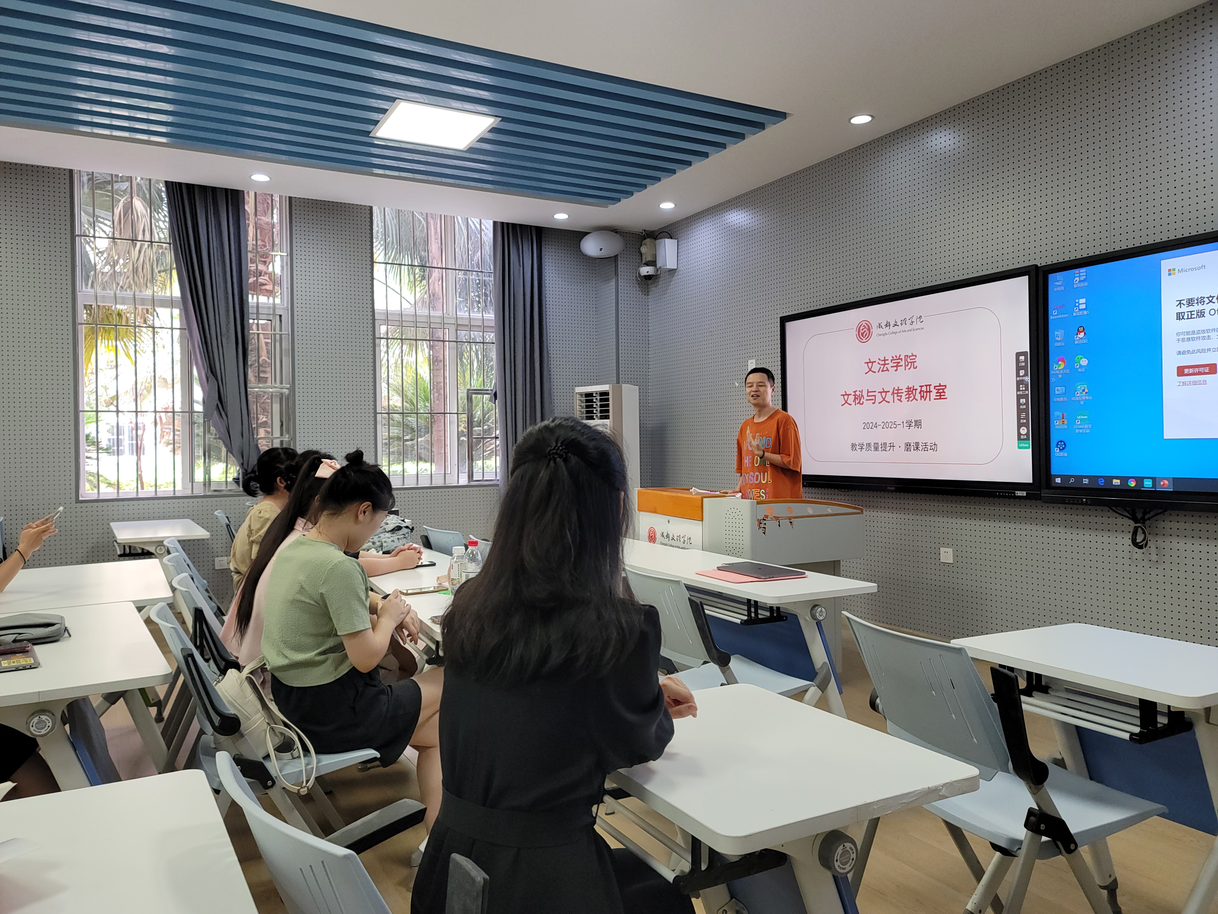 本次活动由教研室主任陈诗老师主持,教研室全体 12 名教师参加了本次磨课活动。陈老师强调,磨课活动对于提升教师专业素养、优化教学设计具有重要意义,并鼓励全体教师以此为契机,深入探索双语教学与文传文秘课程发展的新路径,共同推动学科发展。