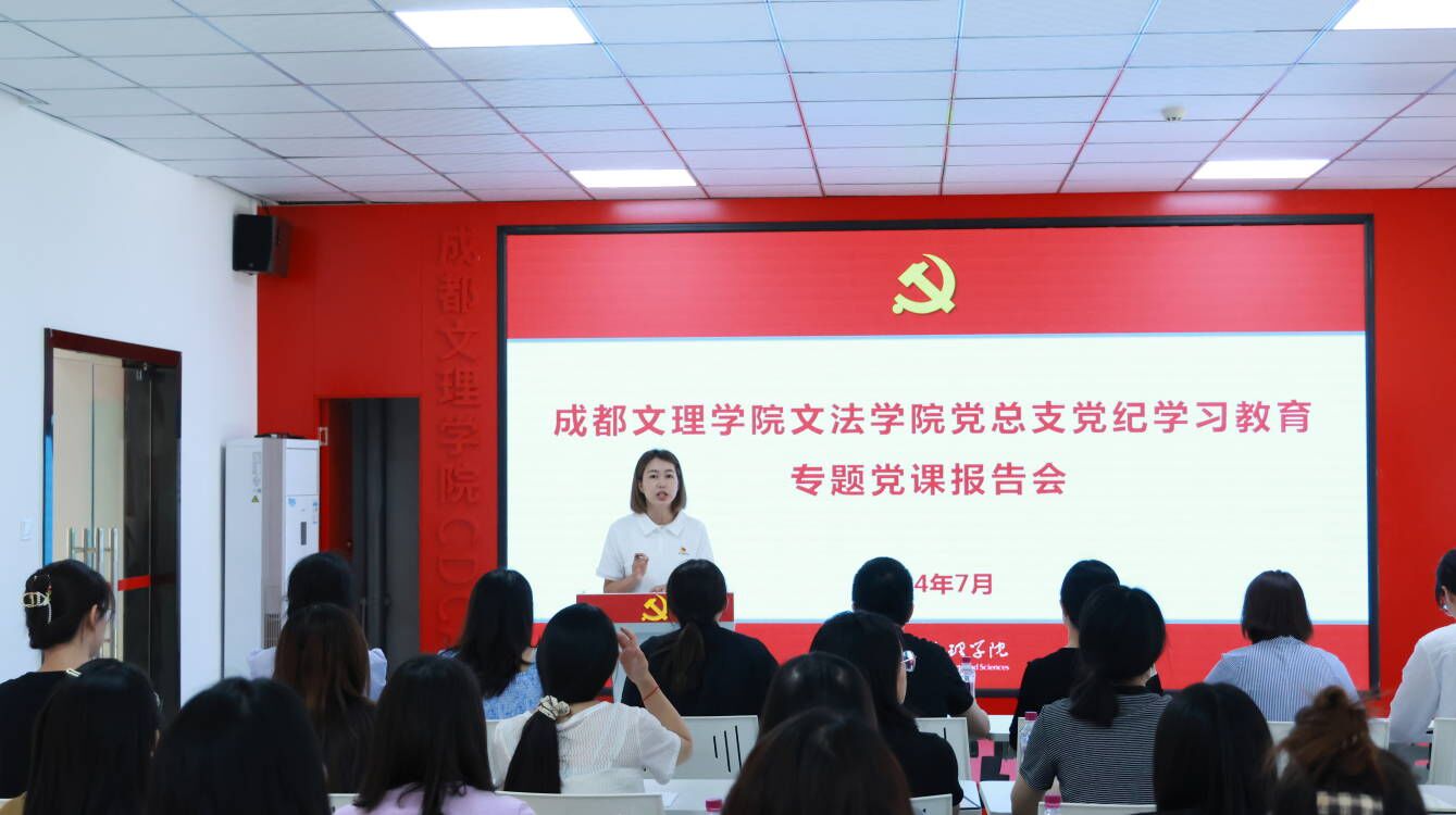 按照党纪学习教育总体安排及学校党委有关工作要求,7月2日晚,文法学院党总支在四楼党员先锋驿站开展党纪学习教育专题党课报告会,党总支书记陆明烨以“深悟党纪内涵,严守纪律底线”为主题,为全院师生党员讲纪律党课。
