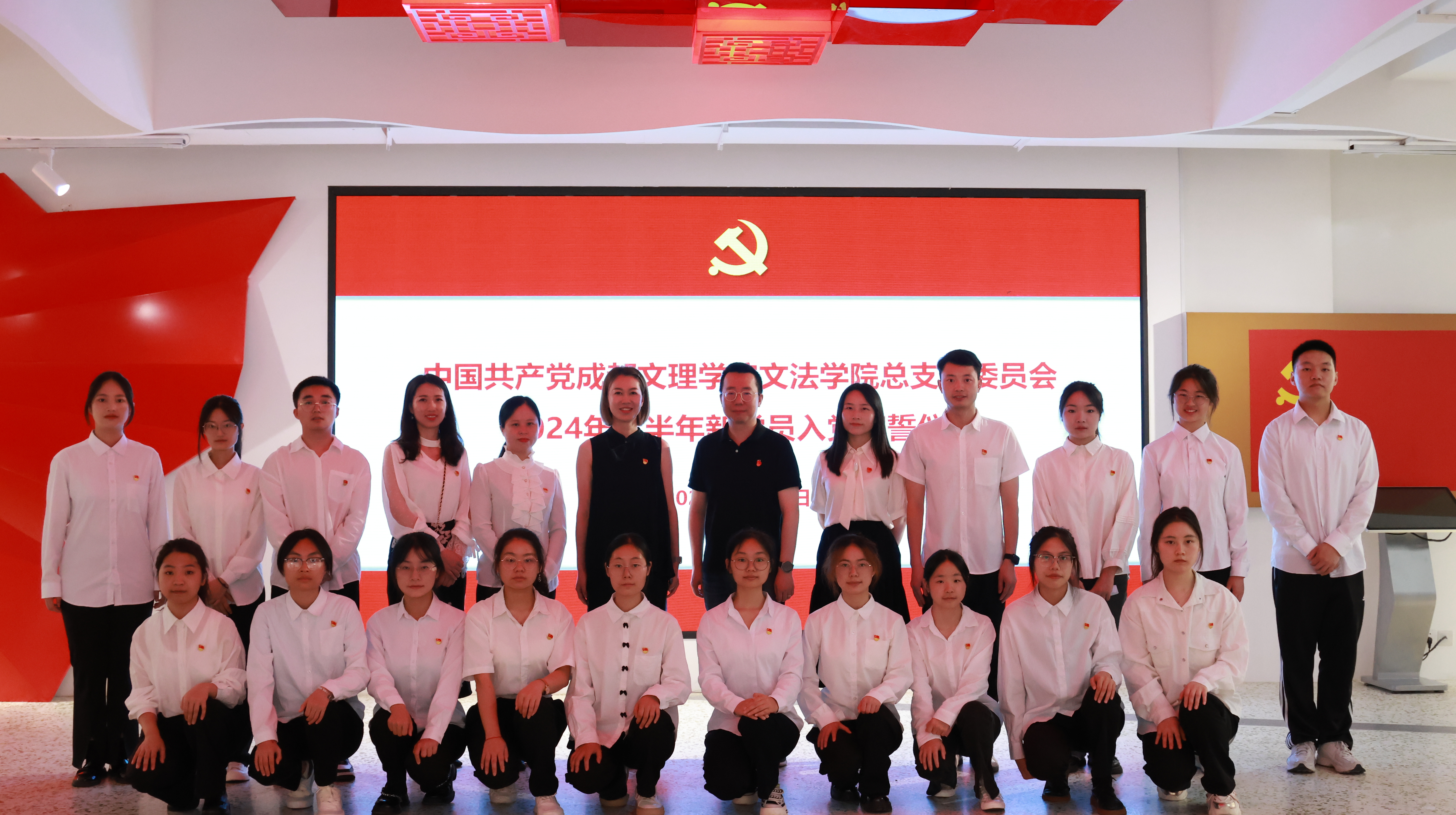 为进一步加强新发展党员的党性教育,激励党员牢记入党初心,坚定理想信念,强化党员身份认同。6月26日,在“七一”建党节到来之际,文法学院党总支在四楼党员先锋驿站举行2024年新发展党员入党宣誓仪式。文法学院党总支书记陆明烨、党总支副书记李明昌、党总支组织员、全体学生党支部书记及2024年上半年新发展党员参加宣誓活动,活动由党总支组织员徐婷主持。