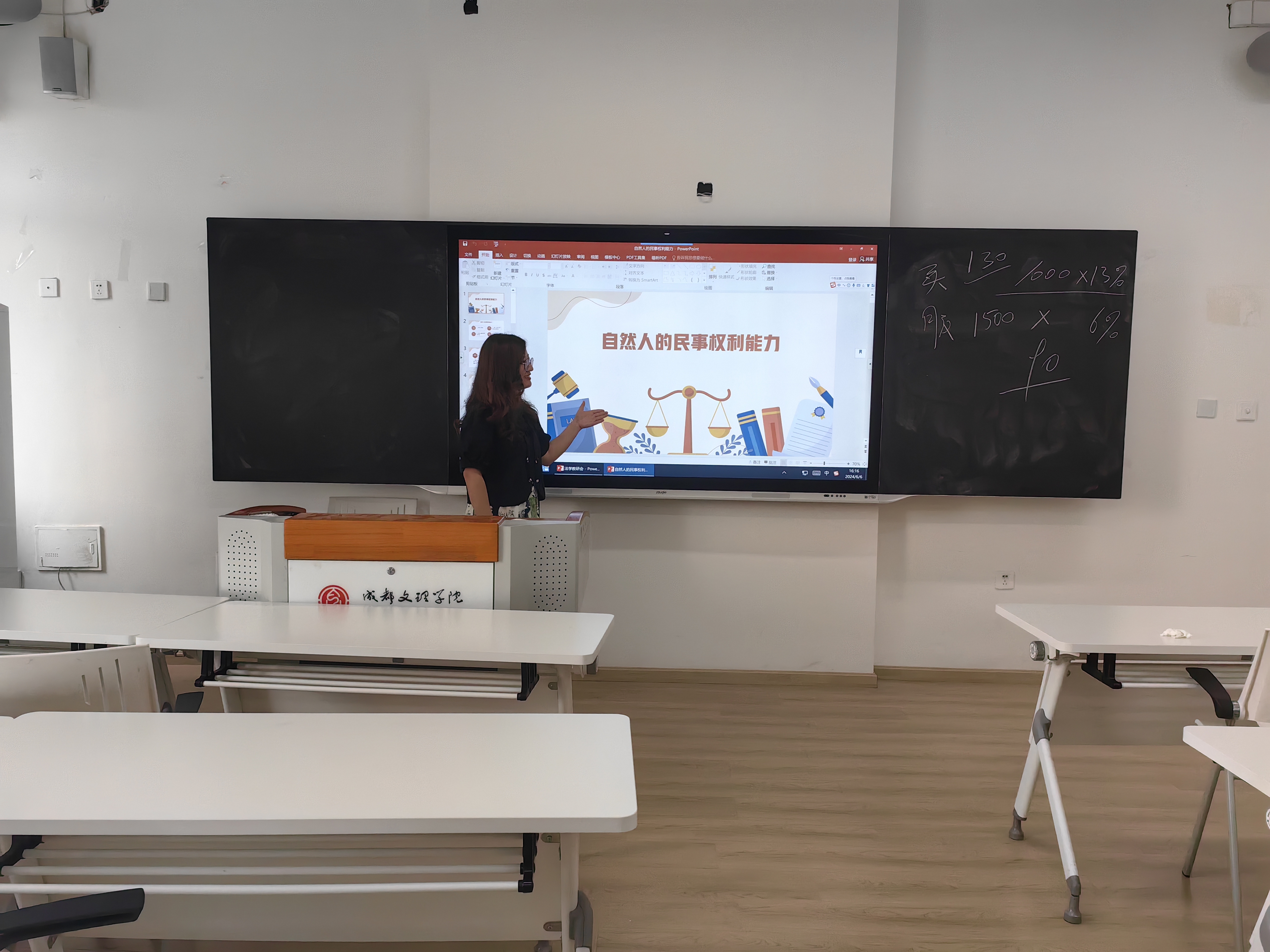 杨智老师所授课程为《中国法律史》,以唐代“自首”制度为主题进行了授课;格日勒老师所授课程为《民法总论》,以案例为导入分享了“自然人的民事权利能力”的内容;申阳涛老师所授课程为《财税法》,通过清晰的框架展示了“增值税法”的内容;韩笑老师所授课程为《证据法》,主要展示了“证据的学理分类”的内容。老师们运用自己扎实的理论功底阐述了相关知识点,并引导学生从不同角度思考和理解这些内容。