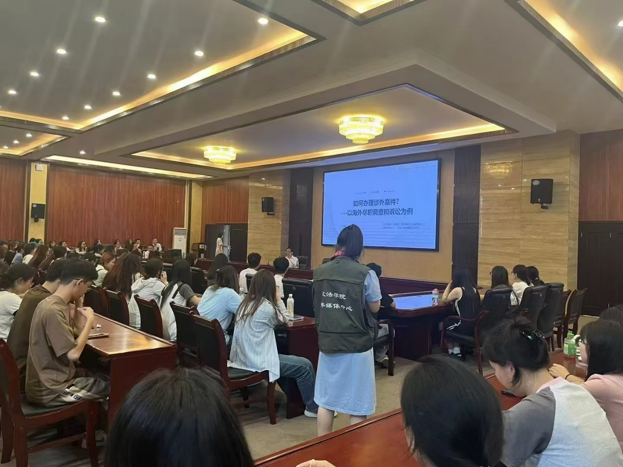 肖登国书记主要从中美法律制度比较、成为涉外律师的要求、海外尽职调查实践、涉外诉讼和仲裁案例分享及启示四个主要方面,讲解关于涉外案件以及涉外律师的要求与发展前景。首先,肖登国书记通过对比中外律师、律所及案件审理制度的等方面的不同,结合我国未来发展趋势分析涉外律师情况,以“一带一路”法律服务典型案例向大家介绍涉外律师的基本素质,展示了涉外律师的发展前景。其次,肖登国书记结合多起案例向大家展示了近几年我国涉外案件所取得的成就,让大家深切地感受到我国对于涉外法律专业人员的迫切需求。对此,肖登国书记殷切希望大家能够努力潜心学习法律专业知识,学好外语,在不久的将来能够为我国涉外法律事业作出贡献。再次,由还在美国纽约办案的肖登国书记团队的肖悦律师,以视频的方式分享四个涉外案例,讲述跨国法律案涉及到的相关问题。随后,肖书记助理魏崃分享了她在海外留学的经历和学习法律的经验,给同学们提供了许多宝贵的建议。最后,在互动环节,肖登国书记为同学们答疑解惑,给同学们提供了许多有价值的建议和帮助。