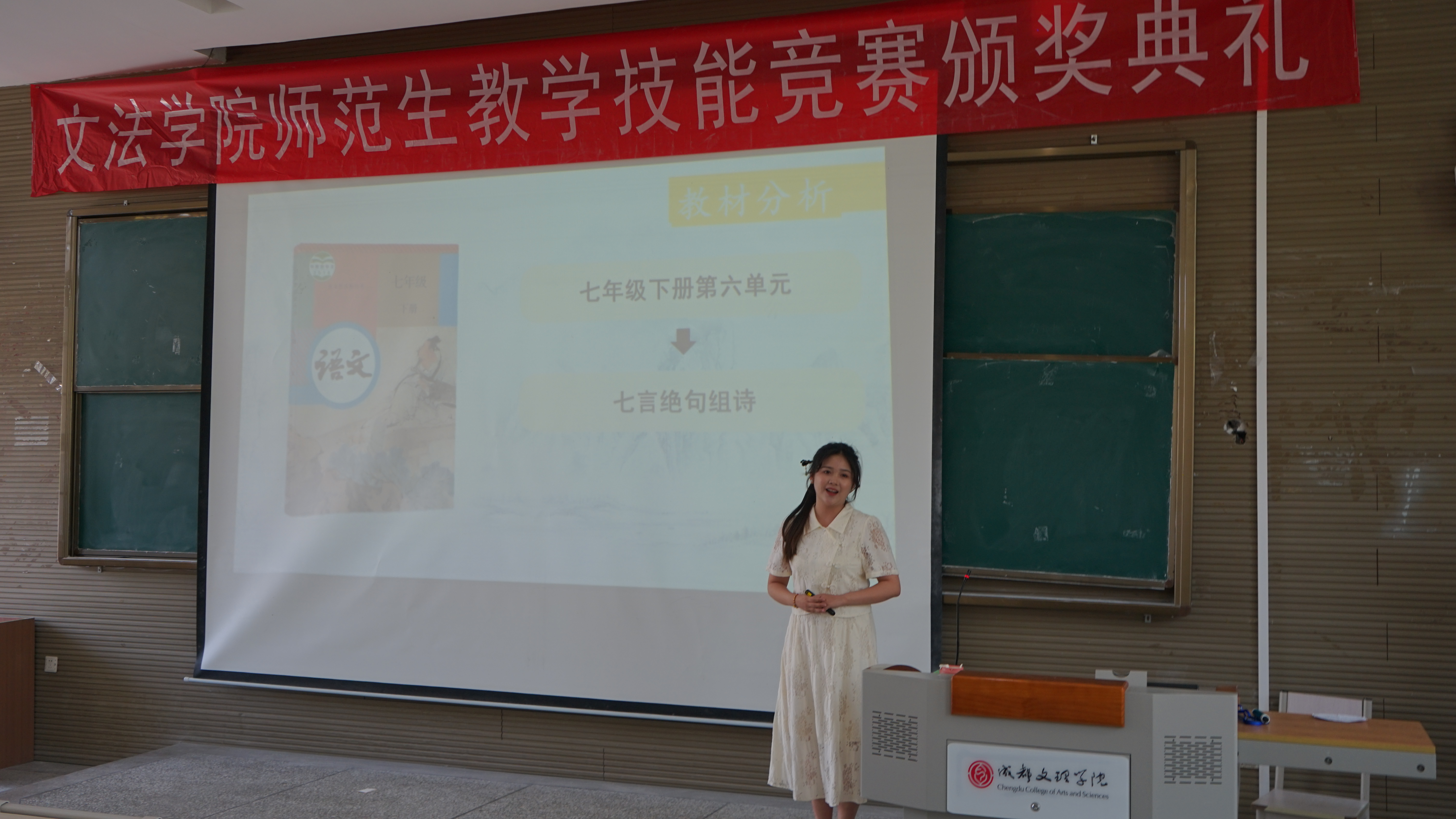5月16日下午,文法学院第三届师范生教学技能竞赛颁奖典礼于B214教室举行。院长徐学东,党总支书记陆明烨,副院长曹佳丽,党总支副书记李明昌,师范生教学技能与素养训练中心主任杨娟,各教研室主任、副主任,弘博书院负责人,语文教育教研室全体教师,获奖选手及汉语言文学师范专业各年级代表到场参加。