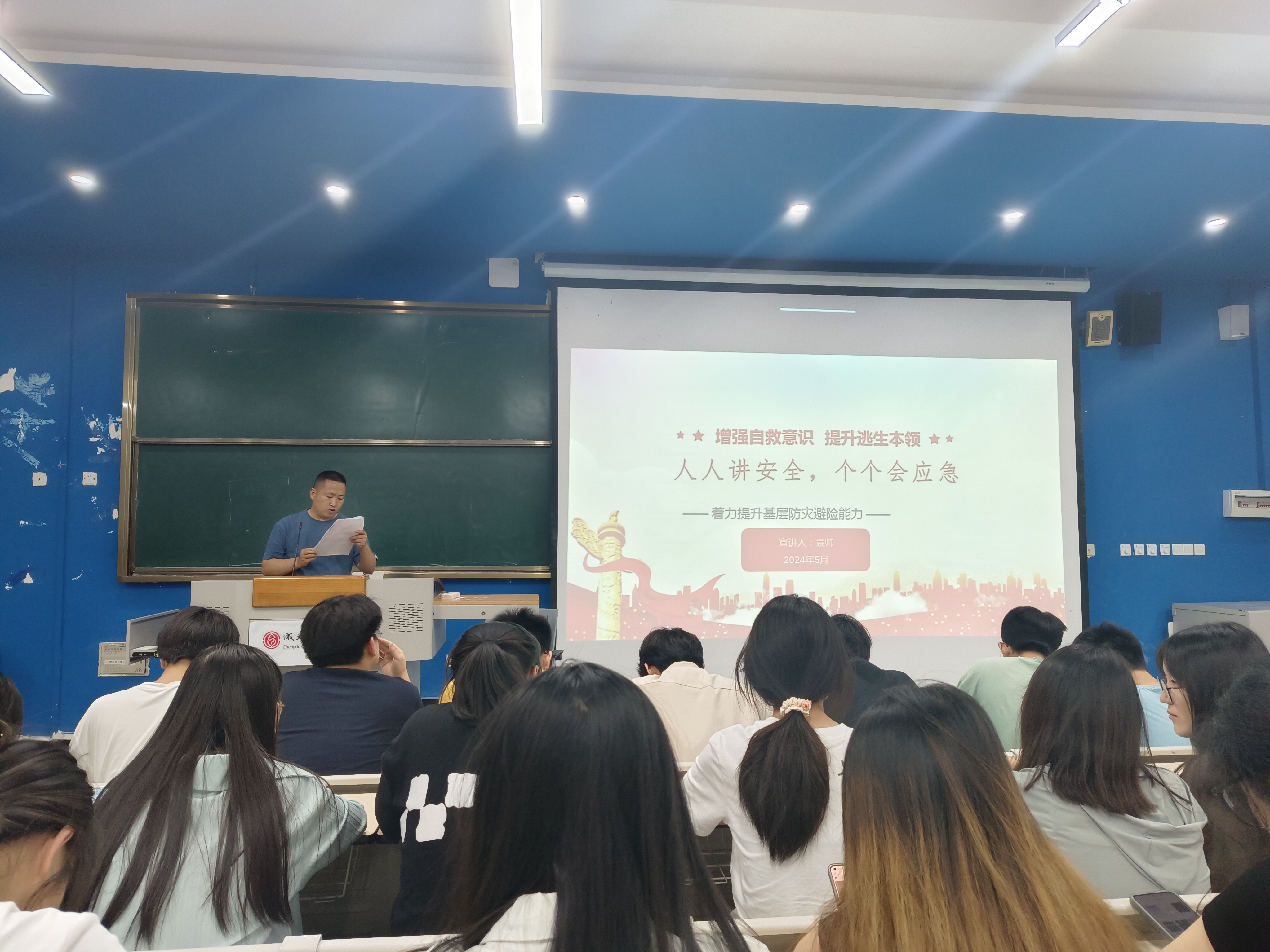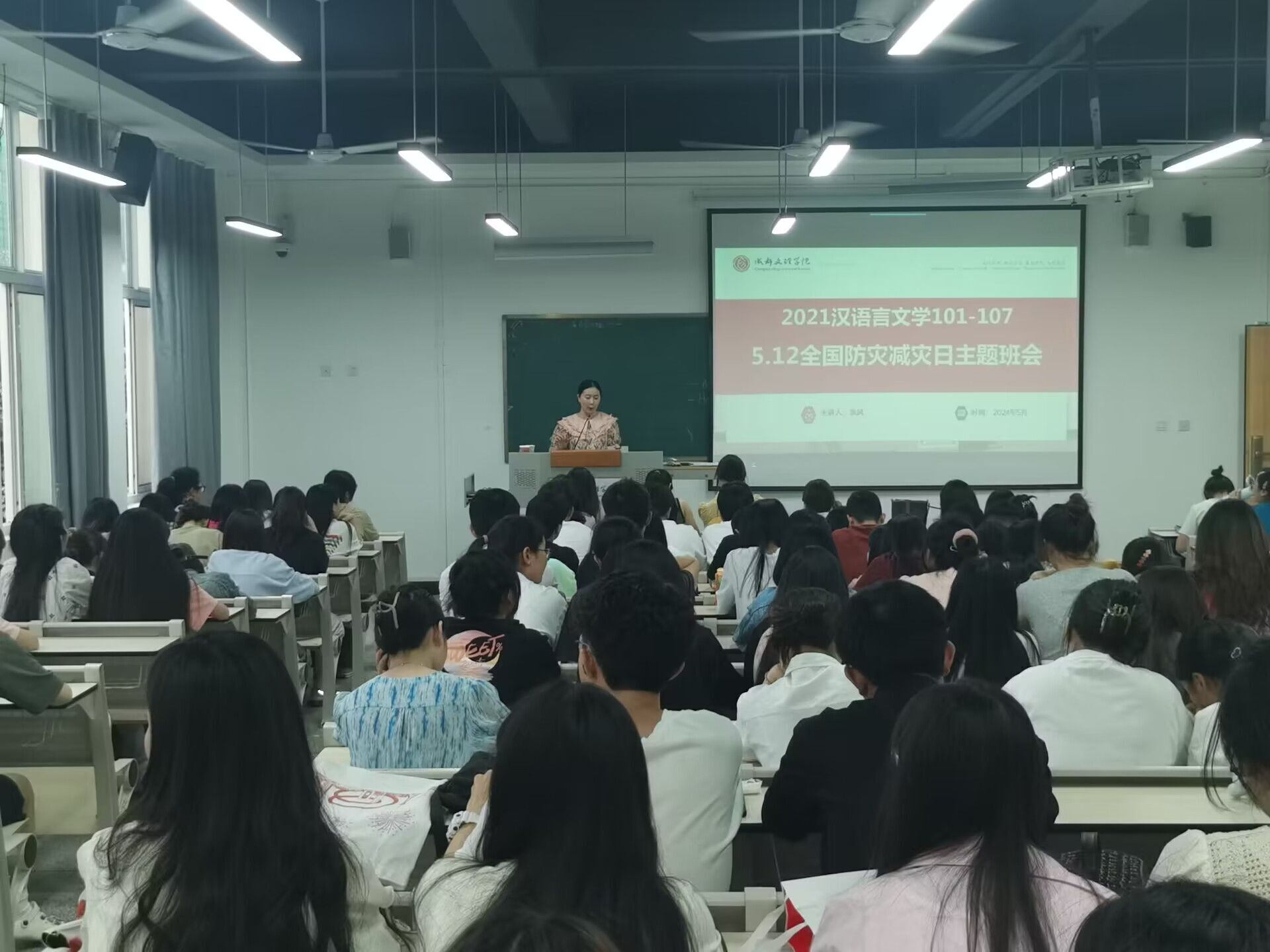 活动期间,文法学院全体辅导员精心策划了一系列“体验式、互动式”的主题班会和教育实践活动。通过设置播放教育影片、举办专题讲座等形式,全方位、多角度地向学生们普及防灾减灾知识。同时,利用公众号、班级群等线上平台,不断扩大宣传覆盖面。