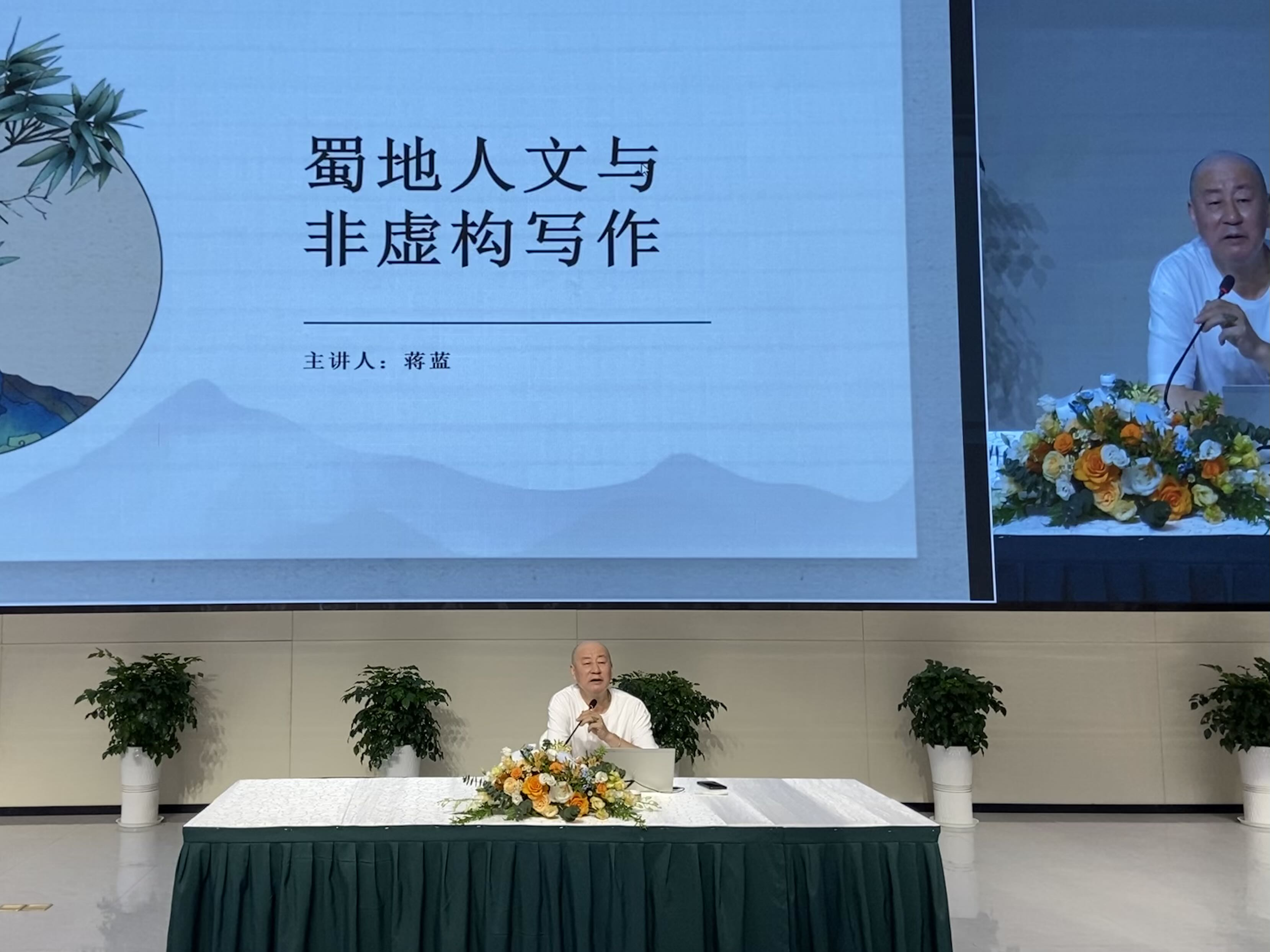 随后,在《蜀地人文与非虚构写作》专题讲座中,蒋蓝首先从非虚构文学与报告文学、纪实文学等不同体裁进行对比分析,明晰了“非虚构”写作和文学的定义和特征,然后从自己多年的写作经历入手,探讨了非虚构写作的原则和方法。