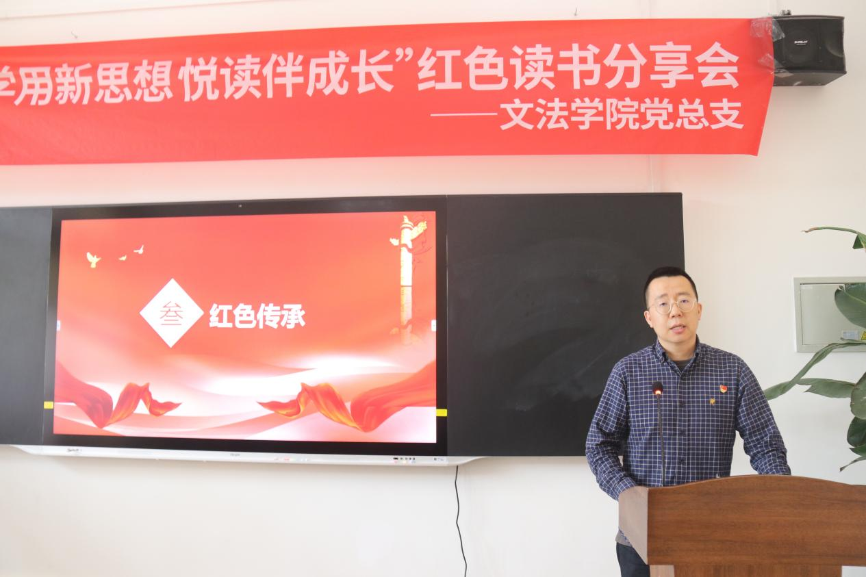 文法学院党总支于4月29日下午,在弘博书院举行了以“学用新思想,阅读伴成长”为主题的读书会主题党日活动,文法学院党总支副书记兼学工办主任李明昌以及各支部党员同志代表到场参加。