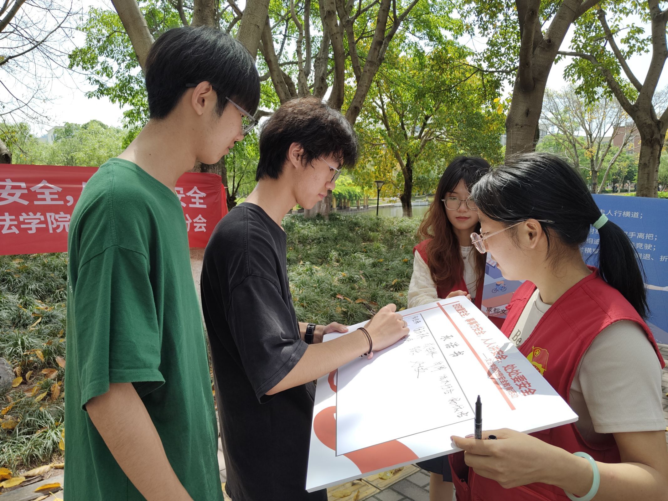 本次校园安全教育宣传活动包括国家安全、网络安全、大学生心理健康安全、电信诈骗、交通安全、食品安全、宿舍安全、财产安全多方面。志愿者们手持宣传板和签名板,向路过的师生宣讲安全知识,鼓励师生在校园安全承诺书上签字。活动过程中,为了让更多的师生参与到本次校园安全倡议宣传活动中来,志愿者们选择人流量多的地方,引导他们关注宣传板内容,进行校园安全知识的学习,致力将校园安全知识宣传到校园每个角落,得到了广大师生的积极响应和热情参与。