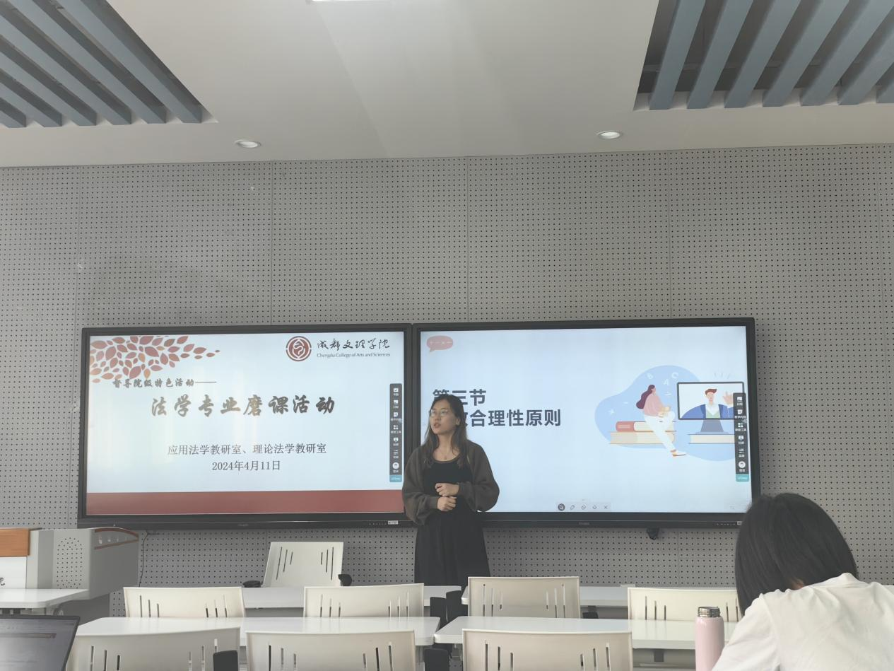 活动伊始,新加入法学教研室的陈一老师首先以行政法的基本原则为主题进行了授课。陈老师结合自己扎实的理论功底阐述了行政法的基本原则,并引导学生从不同角度思考和理解这些原则。