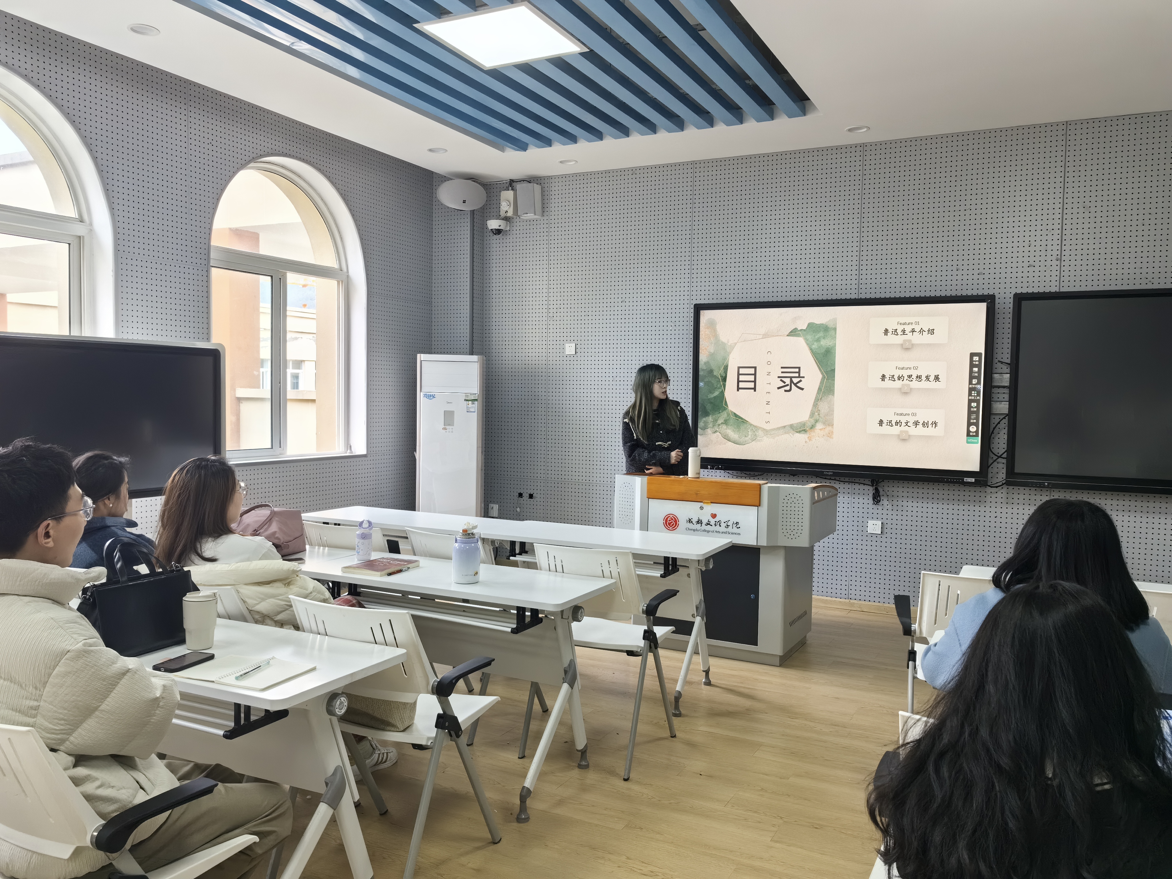 中国现当代文学课程组刘文老师从文学背景、主题、人物、语言等多个角度展开,全面分析《狂人日记》;文涵老师对鲁迅生平经历进行详细介绍,由此过渡到对鲁迅文艺思想形成的讲解与梳理;封羽老师对《呼兰河传》中小团圆媳妇的故事进行了详细的文本分析与课堂探索,情感真挚,切入点新颖。
