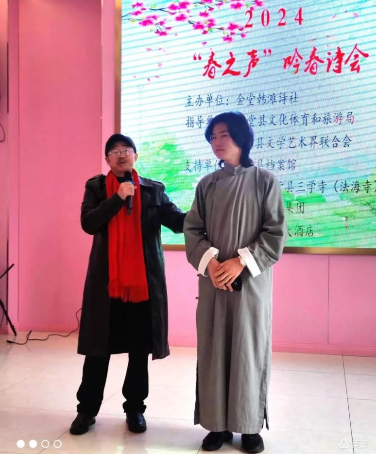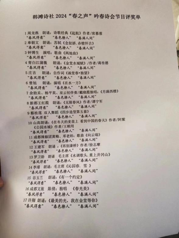 春和景明,惠风和畅,2024年3月9日,金堂县韩滩诗社举办2024“春之声”吟春诗会。文法学院师生受邀参与诗会,带来文艺节目表演,展现师生风采。